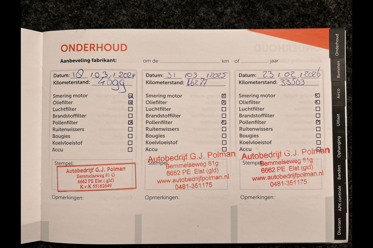 Onderhoudsboekjes: Aanwezig