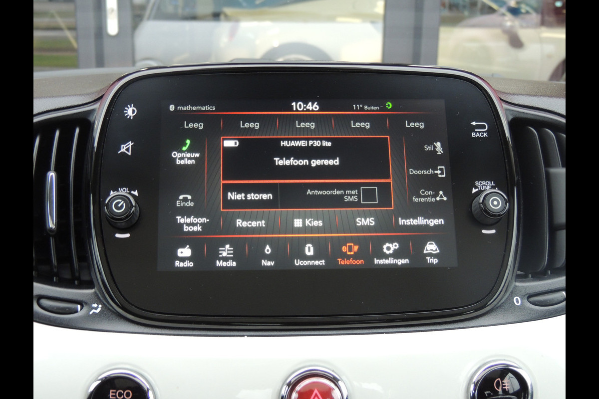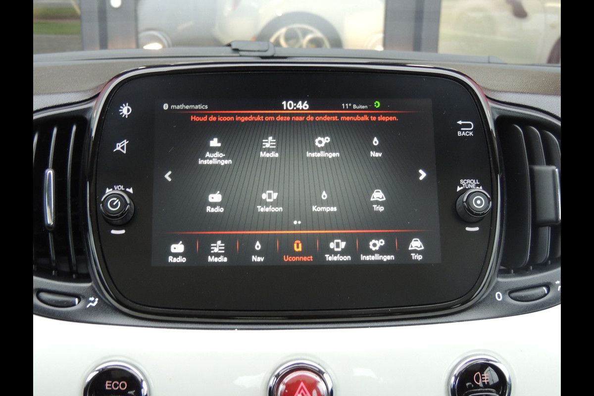 In één oogopslag zijn alle vitale functies afleesbaar dankzij het digitale dashboard. Laat u onderweg niet afleiden, de bediening van het audiosysteem en ook het full map navigatiesysteem gaat met knoppen op het stuur. Natuurlijk is de audio-installatie voorzien van DAB-ontvangst. Ook over uw schouder ziet u onderweg niet alles wat er aan de achterzijde gebeurt. Daarom heeft deze Fiat 500 een achteropkomend verkeer waarschuwing. Liever gepiep dan gekraak? Dan zult u blij zijn met de aanwezige parkeersensoren! Kilometers rijden met een exacte snelheid? Dan is de cruise control je vriend! U bent in deze Fiat ook voorzien van airconditioning, lederen stuur, centrale deurvergrendeling met afstandsbediening en boordcomputer.