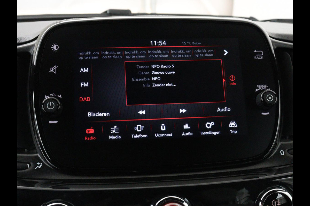 In één oogopslag heeft u alle benodigde functies onderweg in beeld, dankzij het slim ingedeelde digitale dashboard. Het full map navigatiesysteem geeft duidelijke instructies. Zo komt u veilig en vlot aan waar u moet zijn. Schakel simpel en veilig naar uw favoriete artiest met de audiobediening op het stuur. Geniet van een ruime selectie digitale radiostations met de DAB-ontvanger. Parkeersensoren zijn een handig hulpmiddel om parkeerschades te voorkomen. Deze Fiat is voorzien van regensensor, cruise control, airconditioning, centrale portiervergrendeling, boordcomputer en verstelbaar stuur.