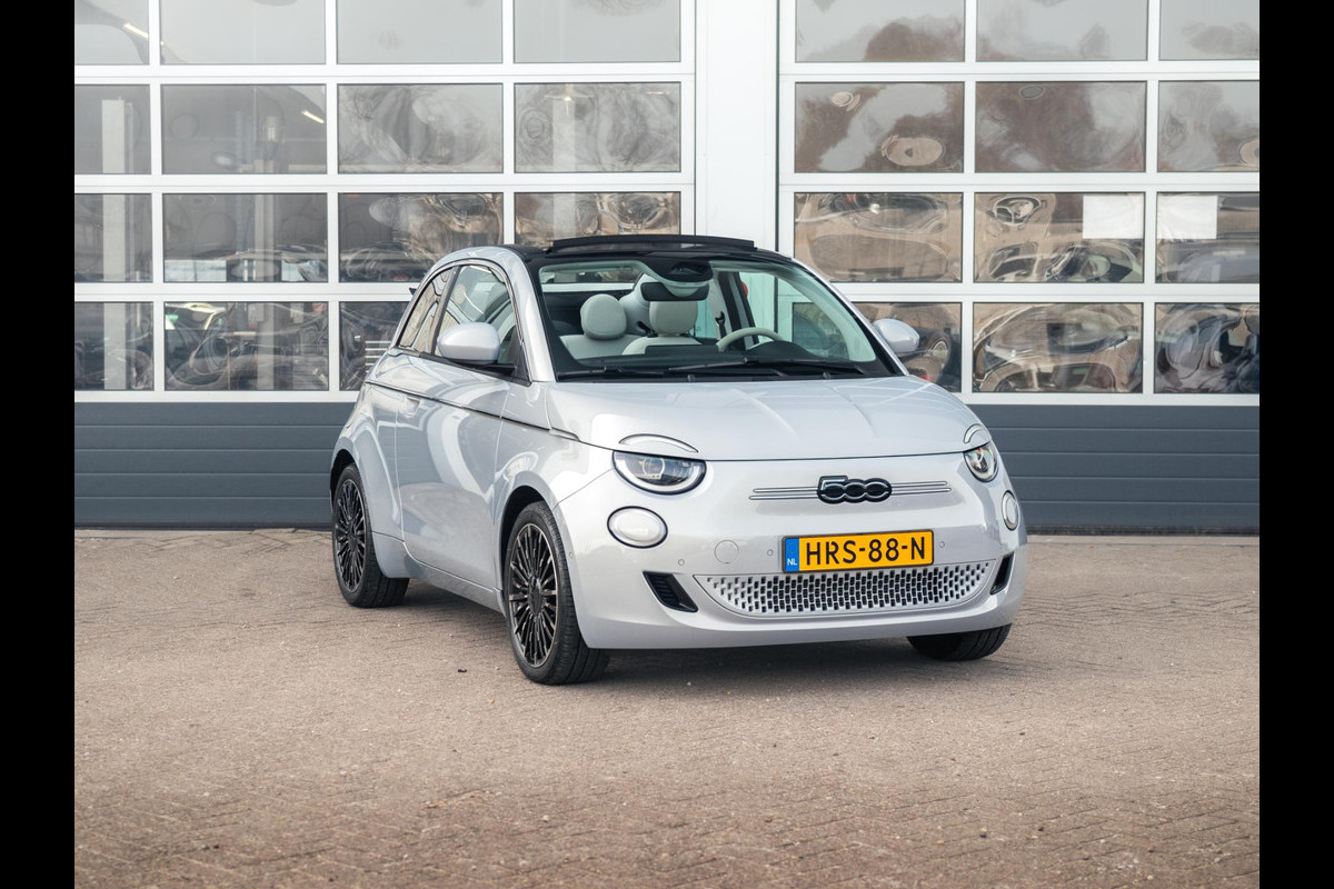 Fiat 500E Cabrio La Prima 42 kWh | 17% Bijtelling | Clima | Cruise | Leder | 17" | Priv Glass | Winter Pack | JBL Sound | BSM | Apple Carplay