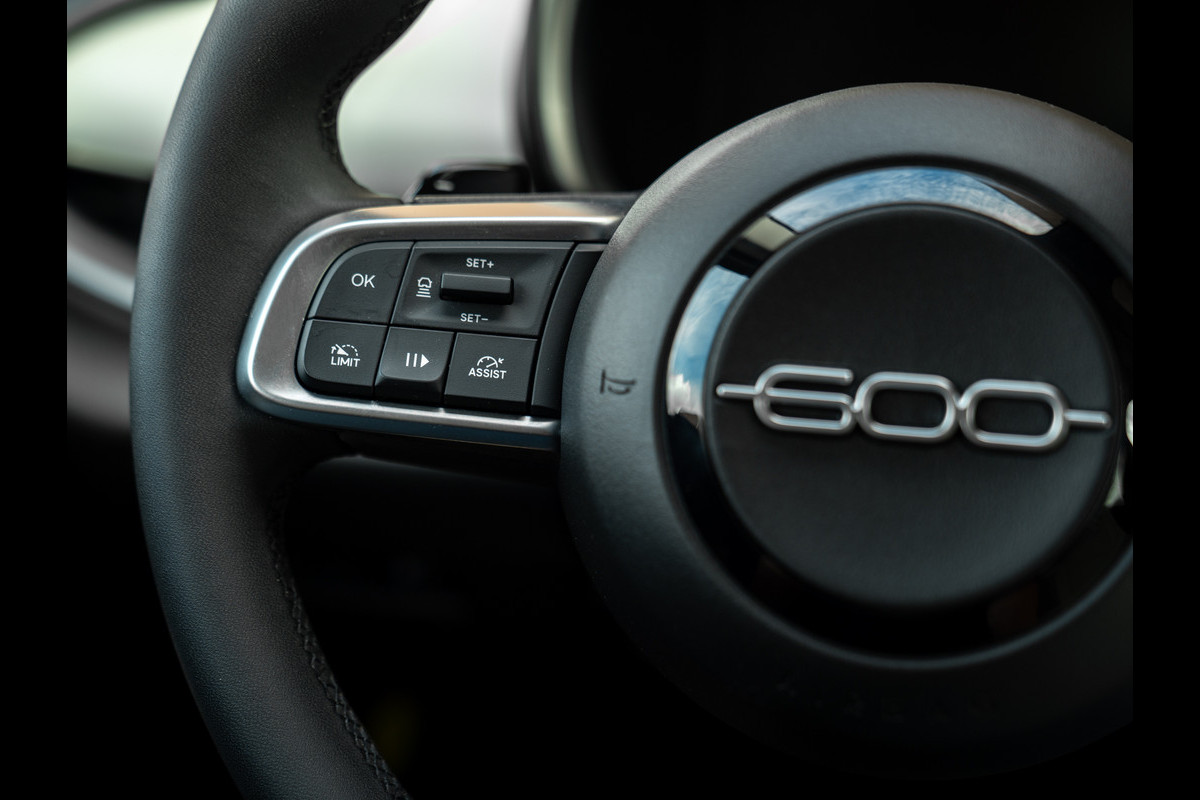 Fiat 600 1.2 Hybrid La Prima 145pk in het Arancio Sun of Italy, voorzien van alle opties.