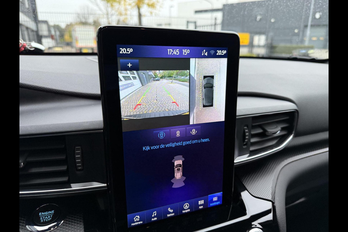 Snelheid, omgevingsinfo, navigatie en communicatie... Het digitale dashboard geeft alles realtime weer. De vier camera's genereren samen een 360 graden beeld rond de auto, zodat u een volledig overzicht hebt van wat er rondom uw auto gebeurt. Met adaptive cruise control houdt deze auto automatisch afstand tot uw voorligger. Een veiligheidsverhogende optie is de ingebouwde spraakbediening. Terwijl u uw ogen op de weg houdt, bedient u de auto met uw stem. Vergeten af te sluiten? Bandenspanning onvoldoende? De speciale app geeft u direct een seintje met behulp van Connected Services. De uitrusting van deze Ford is met premium audiosysteem, full map navigatiesysteem, WIFI-hotspot, achteropkomend verkeer waarschuwing, automatische airconditioning en schakelpaddles aan het stuur behoorlijk compleet.