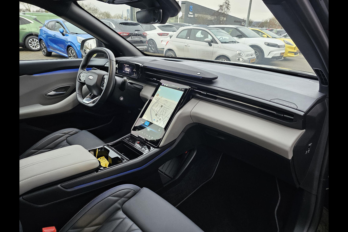 Ford wil altijd z'n voorsprong behouden, net even wat verder gaan. Vandaar het motto 'Go Further'. Probeer 'm eens uit. U kunt ervoor kiezen vanwege het milieu. Maar de elektromotor biedt ook power en prestaties! De verwarmbare voorstoelen zijn voorzien van een massagefunctie, een weldaad voor rug en schouders in elk seizoen. Altijd een goede zitpositie bij iedere snelheid, dankzij de sportstoelen. De elektrische achterklep opent met een druk op de knop, zodat u gemakkelijk toegang heeft tot de bagageruimte. Vergezichten krijgen een extra dimensie door het glazen panoramadak. Aan een fijn opwarmertje in de kille dagen is gedacht, in de vorm van een verwarmd stuurwiel. De koplampen zijn voorzien van matrix LED-verlichting waarmee u aanzienlijk verder kan kijken in het donker. Het systeem past zelf de lichtstraal aan op het moment tegenliggers verblind kunnen worden. Bij de uitrusting van deze auto horen onder meer 20 inch lichtmetalen velgen, elektrisch inklapbare buitenspiegels, extra getint glas, in delen neerklapbare achterbank, LED-achterlichten en elektrisch bedienbare ramen achter.