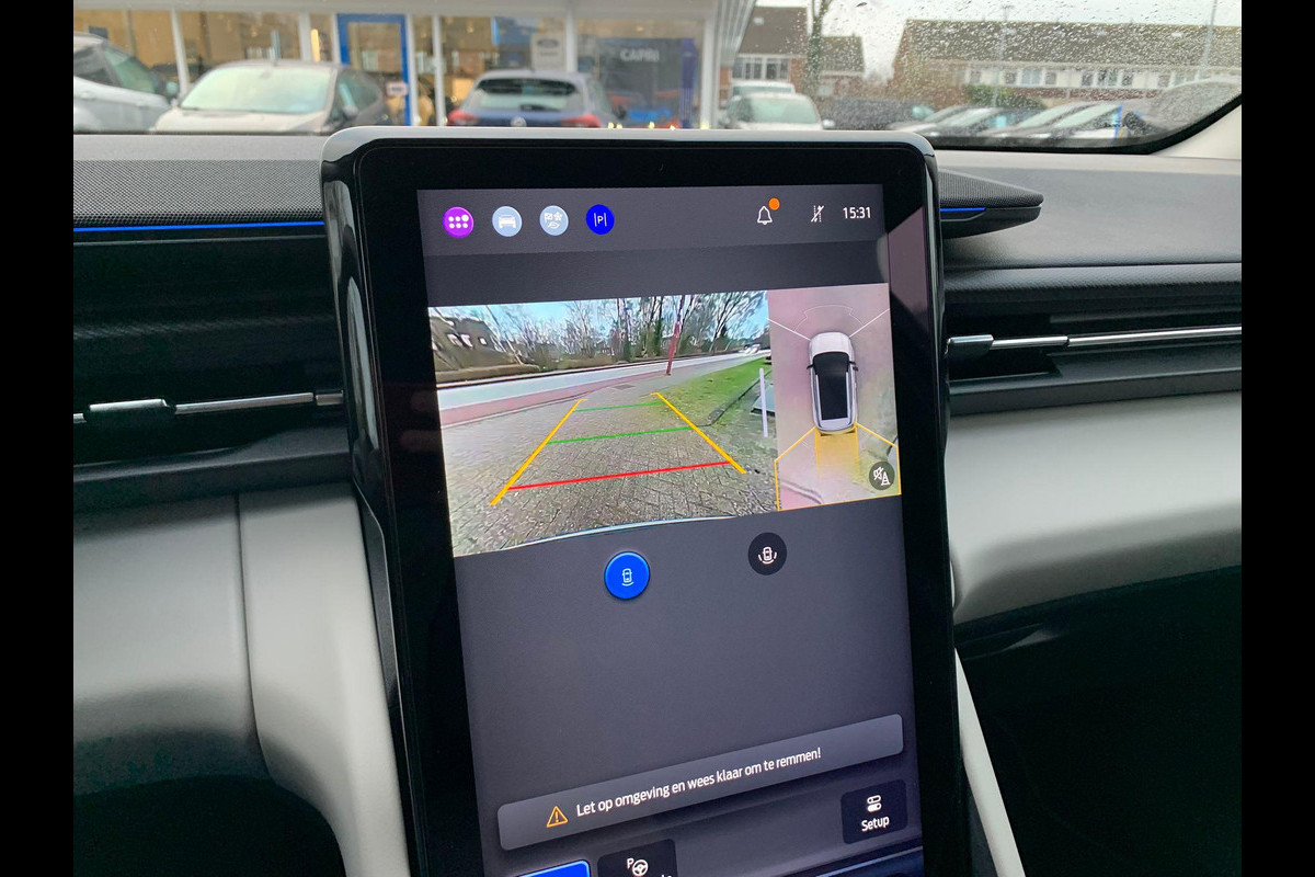 In deze auto zijn verschillende technologieën aanwezig die voor u het verkeer en de omgeving in de gaten houden en die desnoods ook kunnen remmen of bijsturen. Blik permanent op de weg en toch belangrijke functies in beeld? De head-up display projecteert rij-informatie op de voorruit! De actuele snelheidslimiet, een inhaalverbod en andere verkeersborden; de verkeersborddetectie ondersteunt u tijdens elke rit. Met het Lane-keeping systeem komt u nooit per ongeluk buiten de rijstrook. In deze Ford vinden we verder een dodehoekdetector detectiesysteem, vermoeidheidsherkenning en frontale botsbescherming.