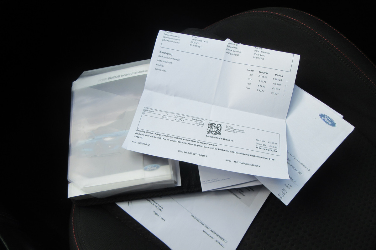 Mooie en Prima onderhouden Ford Focus 1.0 EcoBoost ST Line X Business. Recent 4 nieuwe banden, Elektrisch Panoramadak, Stoelverwarming, Stuurverwarming, Navigatie Enz. BOVAG garantie en geen afleveringskosten.