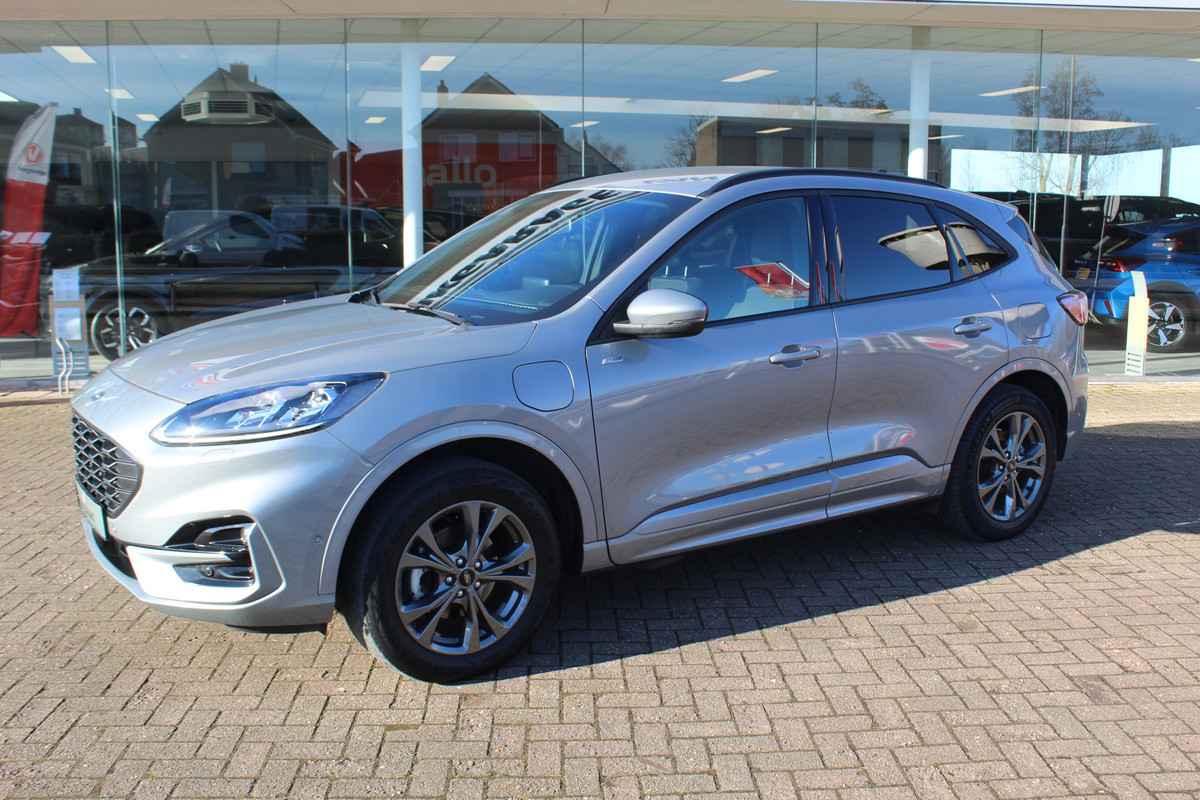 Ford Kuga 2.5-225 PK PHEV ST-Line X. 1500kg Trekgewicht Hybride rijden voor een reële prijs ! Autm. airco, Stoel- en voorraamverw., Side- en lane assist, Adaptieve cruise cntrl, elektr. achterklep, Keyless entry/keyless go, Trekhaak , Navigatie, Telefoonvoorb. etc