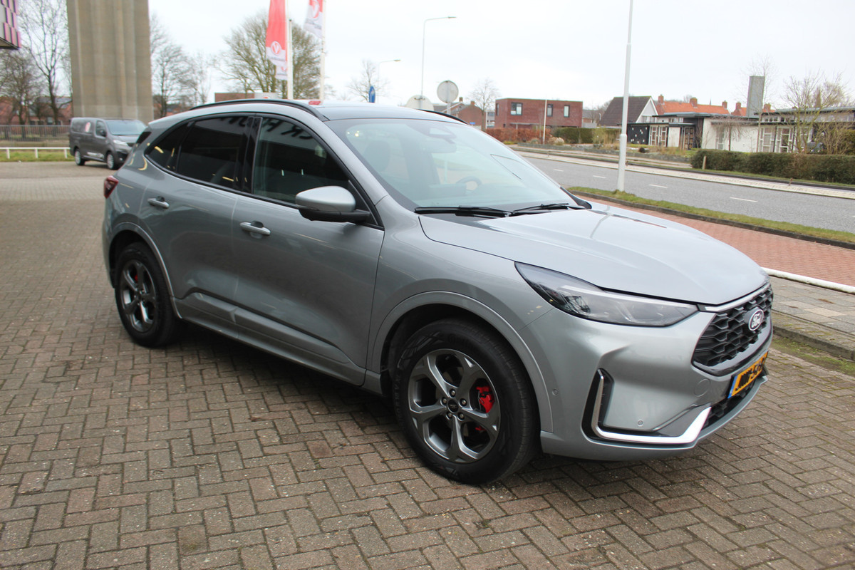 Ford Kuga 2.5-243pk PHEV ST-Line X. Van €. 54.937,- voor €. 43.735,- Trekgewicht van 2.100kg ! Elektr. panodak., elektr. trekhaak, stoel-, stuur- en voorraamverw., 360gr. Camera, HUD, AppleCarplay/Androidauto, Elektr. verstelb. comfortstoelen, LED verl.