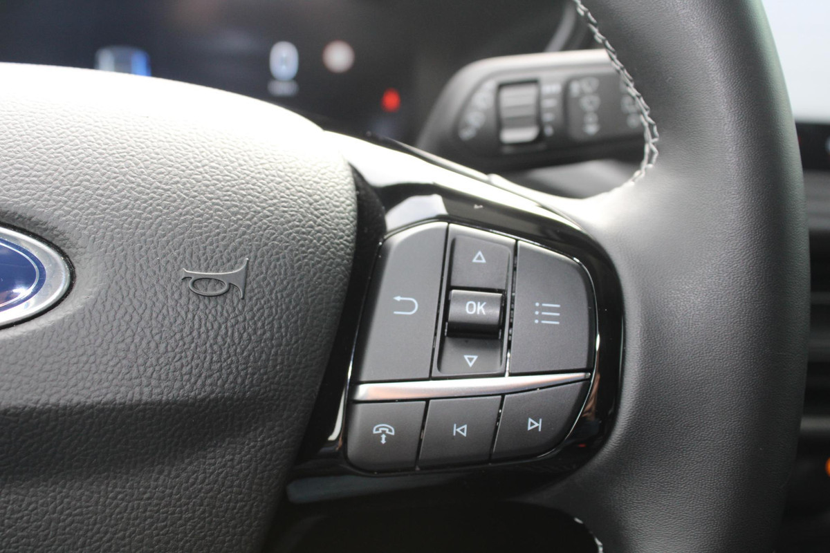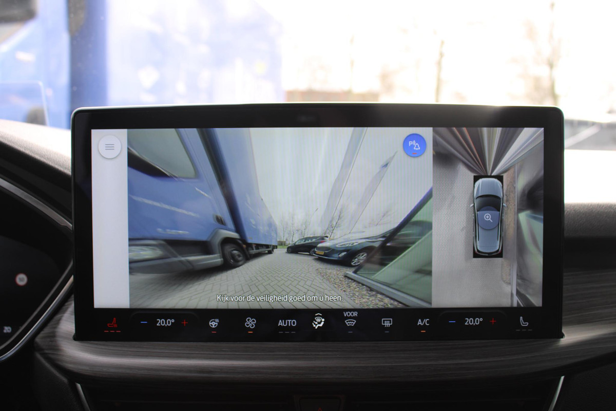 Het digitale dashboard geeft een nauwkeurig en makkelijk overzicht van alle belangrijke functies. De 360 graden camera wordt mogelijk gemaakt door vier camera's die tezamen werken om zo een uitgebreid zicht te bieden, wat van grote waarde is bij het navigeren door smalle straatjes en parkeerplekken. Adaptive cruise control is veilig en comfortabel. De snelheidsregelaar houdt automatisch afstand tot het voertuig dat voor u rijdt. Spraaksturing luistert naar uw stem en bedient de belangrijkste voertuigfuncties. Zo'n lekkere jonge auto heeft natuurlijk leuke extra's, zoals remote services. Met een speciale app maakt u overal verbinding met de auto. Zo kunt u functies activeren en controleren. Met premium audiosysteem, full map navigatiesysteem, kruisend verkeer detectie, automatische airconditioning, draadloos opladen en DAB ontvangst is deze Ford helemaal compleet.