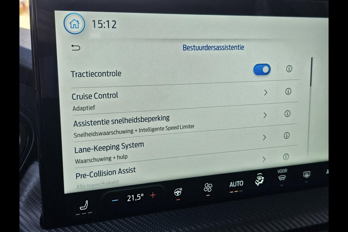Deze Ford is voorzien van verschillende intelligente veiligheidsvoorzieningen. Ze kijken tijdens het rijden als het ware met u mee, ze signaleren potentieel gevaarlijke situaties en in een aantal gevallen kunnen ze ook ingrijpen. U hoeft uw ogen niet meer van de weg te halen om dashboardinformatie te checken. De head-up display projecteert het rechtstreeks in uw zichtveld. Verkeersbord-detectie herkent verkeersborden en toont deze op het instrumentarium van de auto. Voorzien van het Lane-keeping systeem. Ofwel: blijf automatisch in je baan. De auto is ook uitgerust met dodehoekdetectie, forward collision warning system, hill hold functie, vermoeidheidsherkenning, autonoom remsysteem en bandenspanningcontrolesysteem.