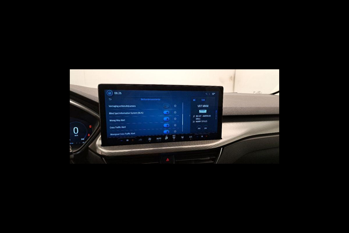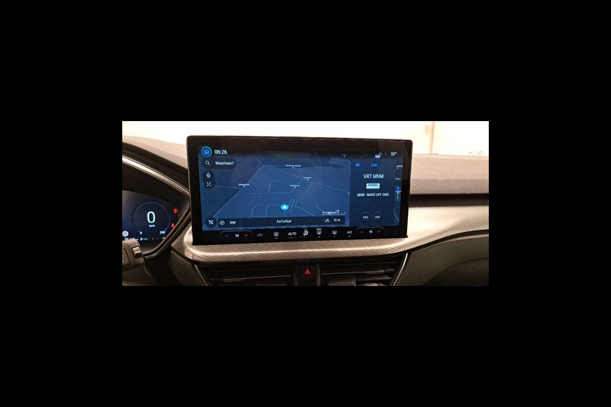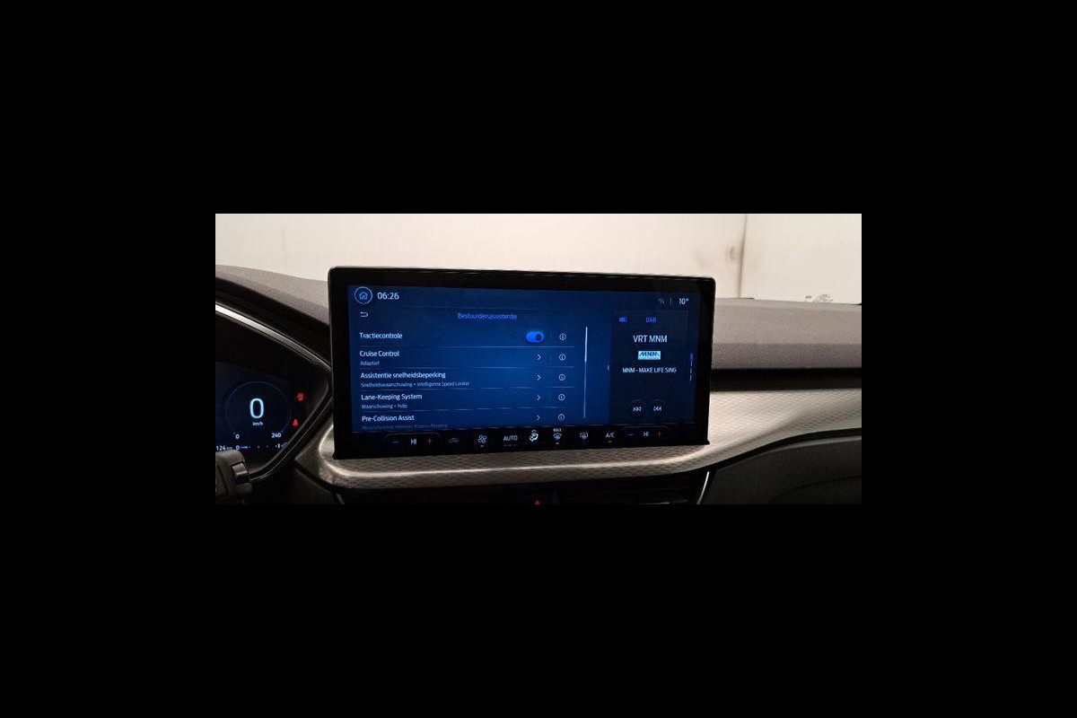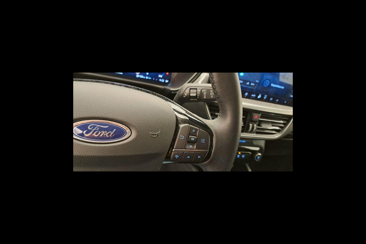 Het digitale dashboard is niet alleen enorm fraai en handig, maar draagt actief bij aan een veilige en slimme rit. De vier camera's genereren samen een 360 graden beeld rond de auto, zodat u een volledig overzicht hebt van wat er rondom uw auto gebeurt. Met adaptive cruise control houdt de auto zelfstandig afstand tot uw voorligger. Een veiligheidsverhogende optie waarmee u comfortabel onderweg bent. Ingericht op Connected Services, voor een nog veiligere en comfortabelere rit. Gemakkelijk en veilig is de spraakbediening voor het audiosysteem en het full map navigatiesysteem. Daarbij kunt u deze ook bedienen met de knoppen op het stuur. De audio-kwaliteit is geweldig, dankzij de DAB-ontvangst. Ook is de Ford uitgerust met: kruisend verkeer detectie, automatische airconditioning, draadloos opladen, regensensor, keyless entry en automatisch dimmende binnenspiegel.