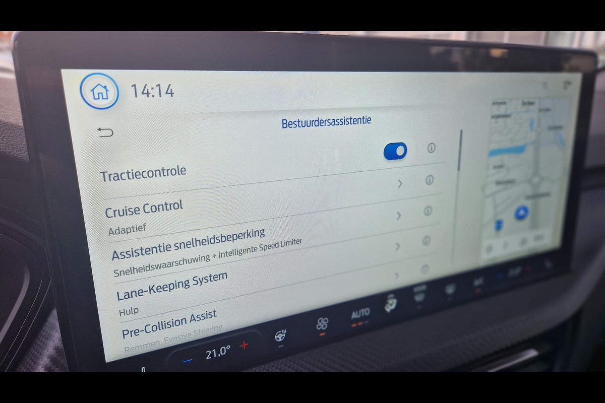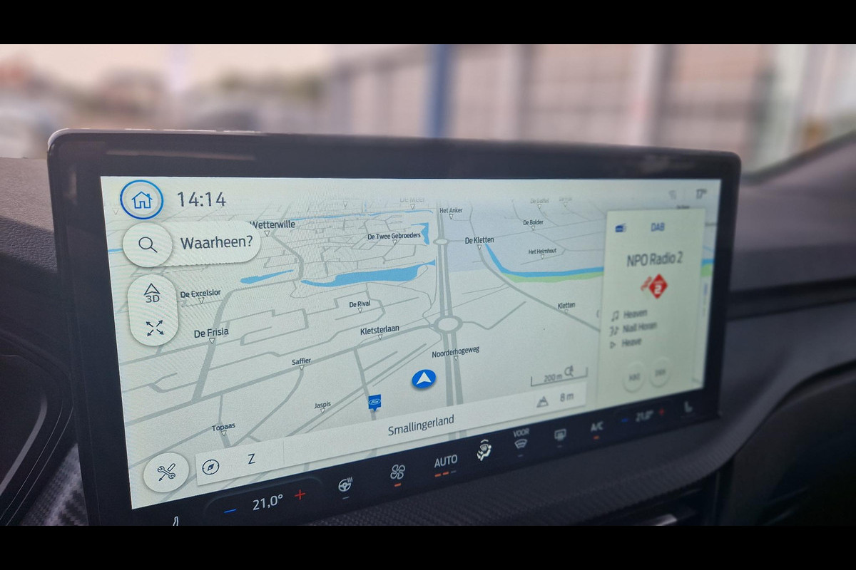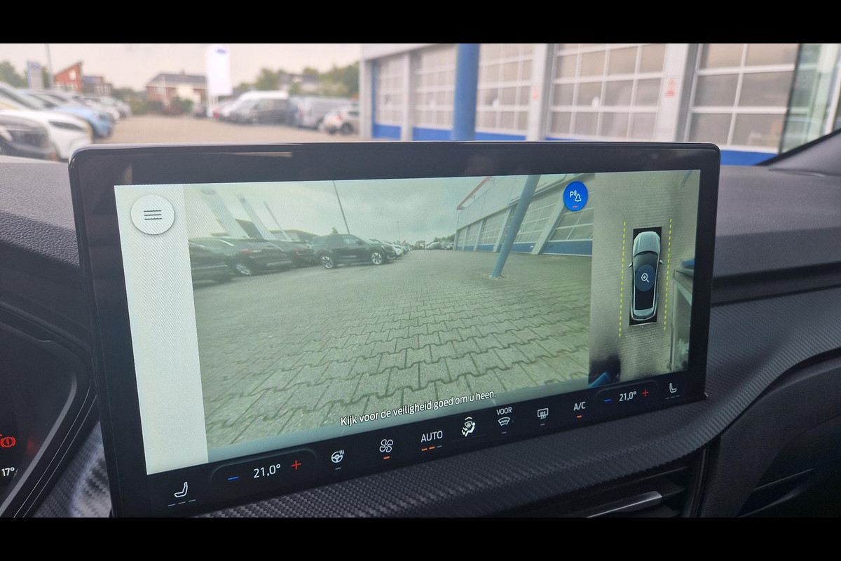 Duik in de digitale wereld van mobiliteit waar alles wat u nodig heeft voor een comfortabele en veilige rit, wordt geprojecteerd op het digitale dashboard. De functie van deze 360 graden camera is vooral nuttig in smalle straatjes waar het zicht beperkt is. Adaptive cruise control is een comfortabele en veilige optie. Het systeem reguleert de snelheid en houdt automatisch afstand tot uw voorligger. Spraaksturing is onderdeel van de uitrusting van deze auto. Met uw stem kunt u de belangrijkste voertuigfuncties bedienen. Een smartphone met internetverbinding legt eenvoudig overal contact met de auto. U kunt functies activeren en de conditie van de auto monitoren. Deze Ford is voorzien van premium audiosysteem, full map navigatiesysteem, kruisend verkeer detectie, automatische airconditioning, draadloos opladen en DAB ontvangst.