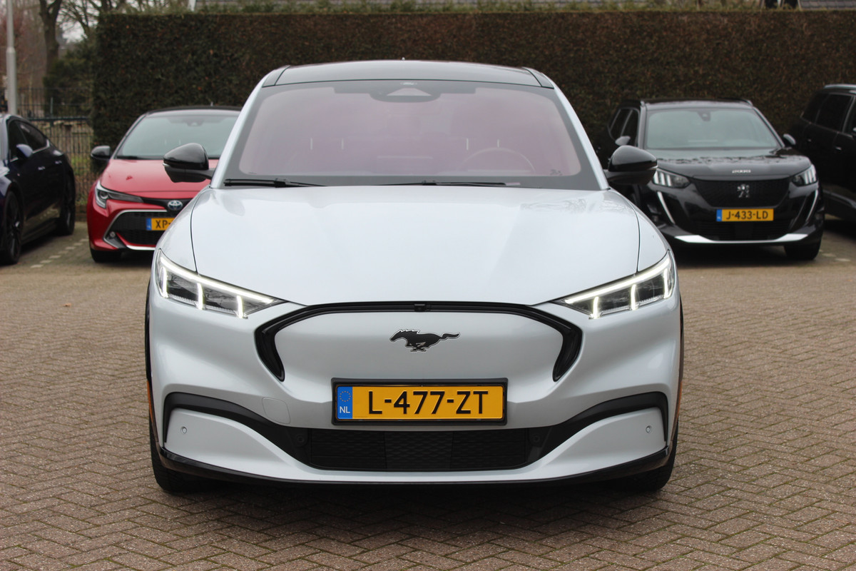 Ford Mustang Mach-E AWD 75 kWh / Panoramadak / Camera / Leder / 19'' / B&O / Keyless / DAB / Dodehoek / ACC / Navigatie / Sfeerverlichting / Stoelverwarming