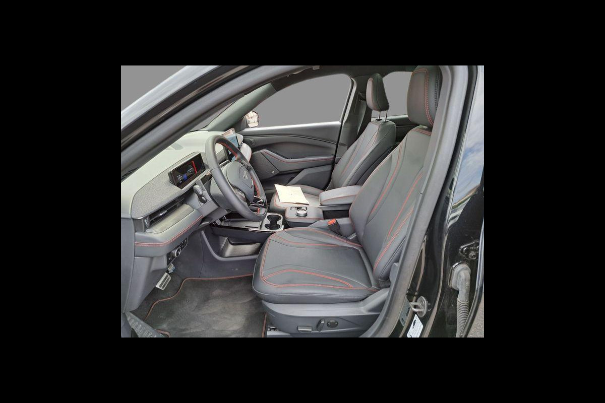 De rijbeleving is intuïtief. Het rijplezier is intens. Maak kennis met deze Ford Mustang Mach-E en laat u verrassen door zijn unieke karakter. Geruisloos genieten tegen lage kosten? Dan is deze elektromotor iets voor u! Deze auto uit 2024 heeft nauwelijks gereden, met een tellerstand van slechts 8424 kilometer. In de verwarmbare voorstoelen zitten is elke keer een welkom gevoel. De elektrisch bedienbare achterklep opent met een druk op de knop. Geniet van de lichtinval en het uitzicht van het grote glazen panoramadak. Als het buiten koud wordt, voelt zo'n verwarmd stuurwiel heerlijk aan. Bij de uitrusting van deze Ford horen onder meer LED koplampen, geluidsisolerende ramen, in delen neerklapbare achterbank, LED-achterlichten en verstelbare lendensteunen.