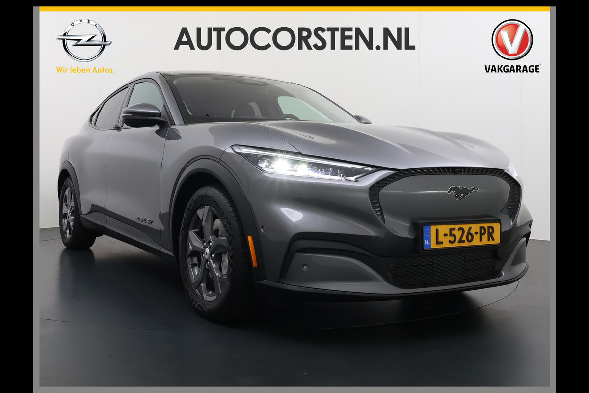 Deze Ford Mustang Mach-E is innovatie op zijn best. Hij is ontworpen als een unieke combinatie van rijplezier en zorg voor het milieu. De fluisterstille elektromotor zorgt voor een serene rijervaring. Een krachtige motor geeft deze auto zijn sportieve prestaties. Houdt u van een stijlvolle uitvoering? Dan zal het lederen interieur u zeker bevallen. Zit u goed? De stoelen zijn eenvoudig instelbaar dankzij de elektrische bediening met geheugen. De elektrische achterklep opent met een druk op de knop, zodat u gemakkelijk toegang heeft tot de bagageruimte. Vergezichten krijgen een extra dimensie door het glazen panoramadak. Al is het nog zo fris, koude handen zijn verleden tijd door het verwarmd stuurwiel. De uitmonstering van deze auto wordt gecompleteerd door onder meer 18 inch lichtmetalen velgen, LED koplampen, geluidsisolerende ramen en LED-achterlichten.