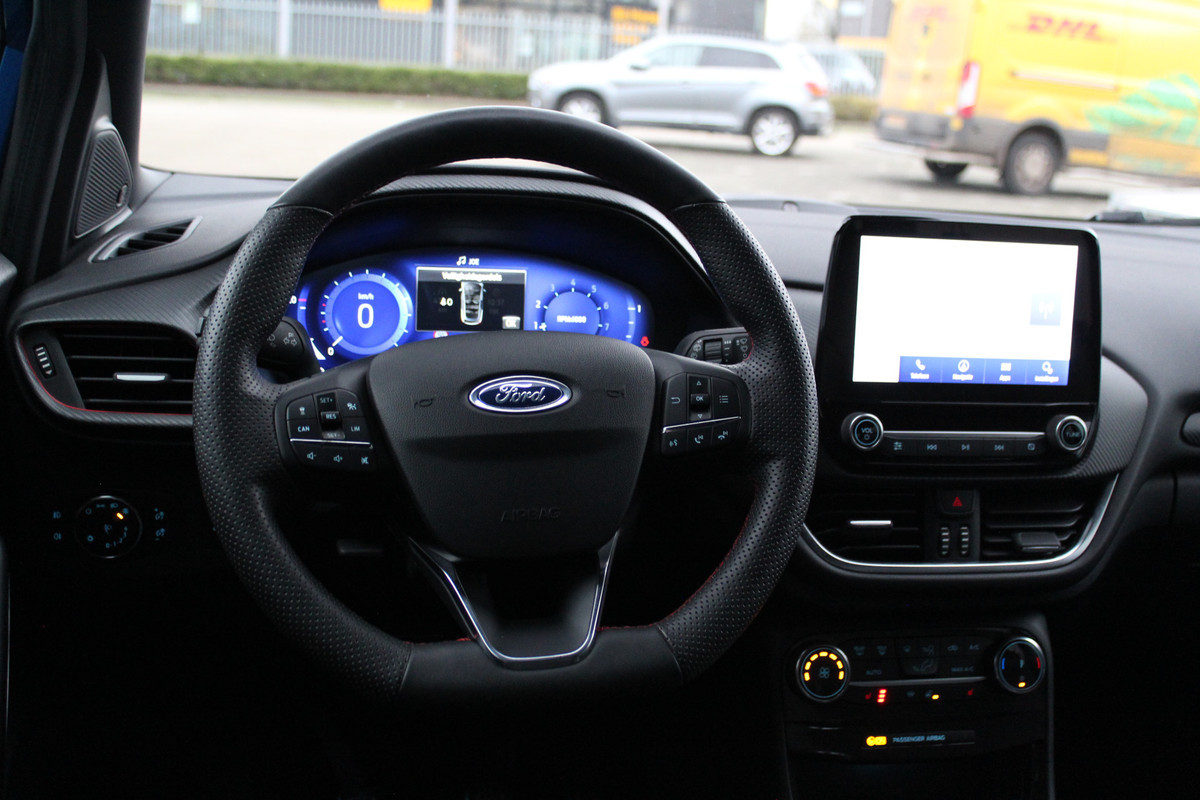 1.0-155pk EcoBoost Hybrid ST-Line X. Erg mooi, nette, luxe en sportieve Ford Puma ! Autm. airco, stoel-, stuur- en voorraamverw., camera, elektr. achterkl., trekhaak+afneemb. kogel, B&O soundsyst., lane- en side assist, adapt. cruise cntrl, LED verl. etc.