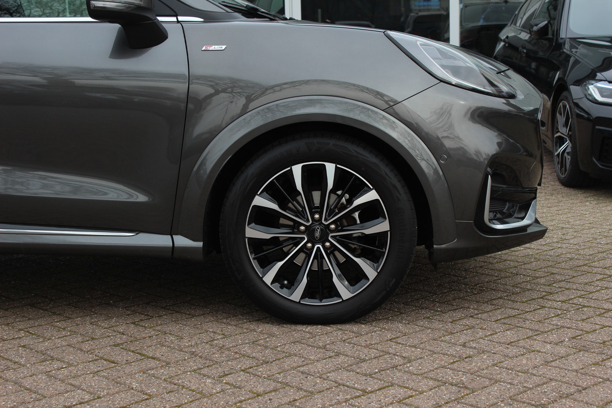 Ford Puma 1.0 EcoBoost Hybrid ST-Line X Vignale 155pk / NL Auto! / Full option! / Trekhaak / Panoramadak / Camera / Leder / CarPlay / B&O / 18'' / Keyless / Stuur+Stoelverwarming / Dodehoek / DAB / Verwarmde voorruit / ACC