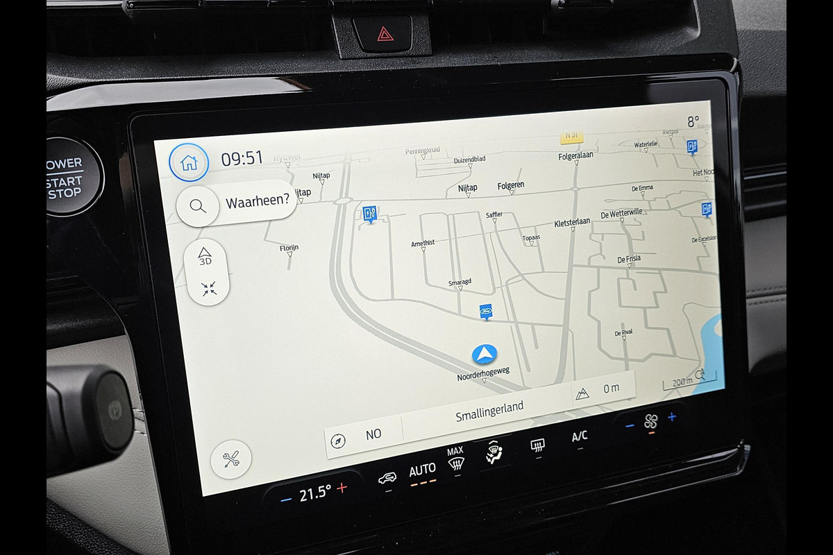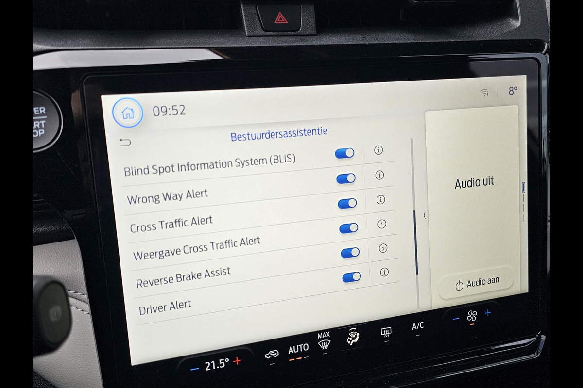 Deze Ford is voorzien van verschillende intelligente veiligheidsvoorzieningen. Ze kijken tijdens het rijden als het ware met u mee, ze signaleren potentieel gevaarlijke situaties en in een aantal gevallen kunnen ze ook ingrijpen. Onderweg fungeert de verkeersbord-detectie als het ware als uw bijrijder en attendeert u op de verkeersborden langs de weg. Een camera houdt de juiste koers binnen de rijstrook in de gaten en het Lane-keeping systeem corrigeert bij afwijkingen. Actieve dodehoekdetectie herkent andere voertuigen die in uw dode hoek rijden. Met dit hulpsysteem bent u veiliger en comfortabeler onderweg.