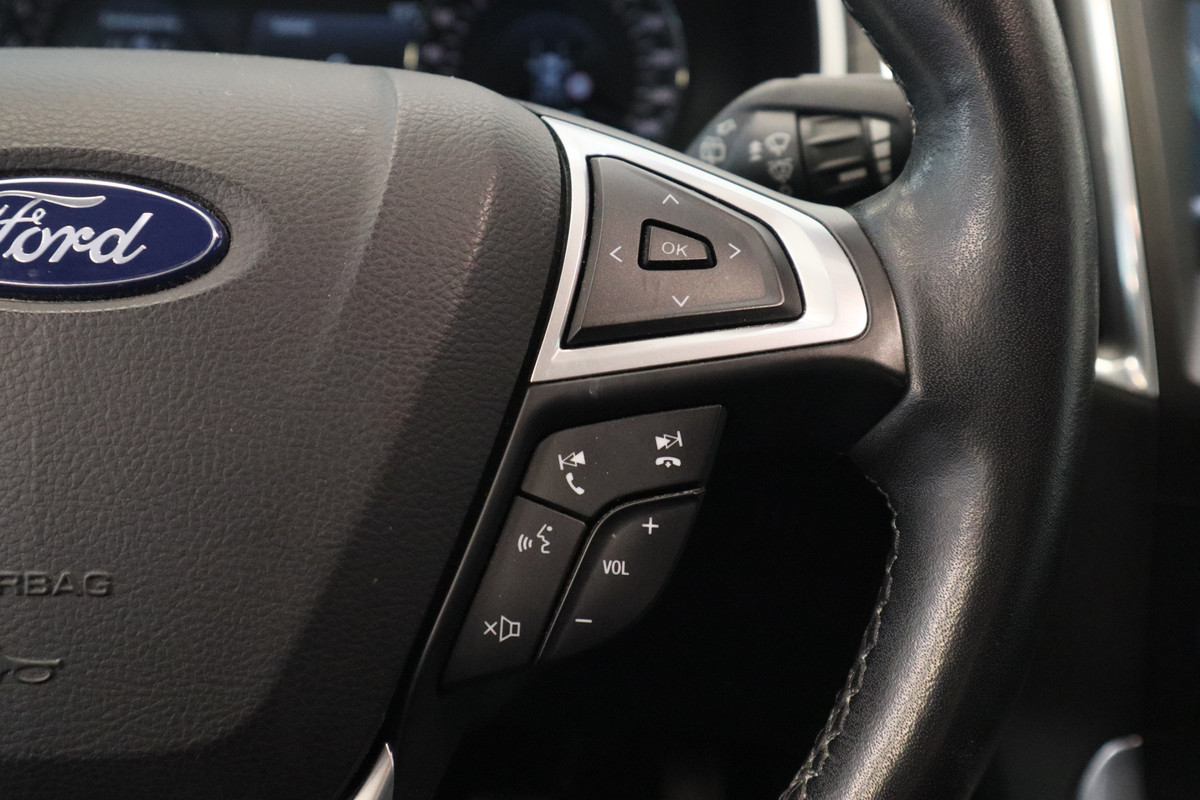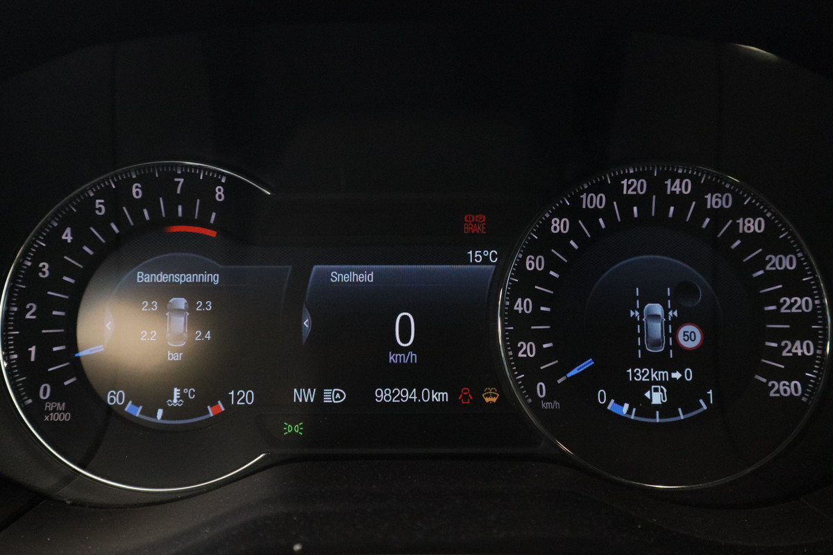 Deze auto gaat met u in gesprek. Hij vertelt u dankzij remote services alles over de status van diverse onderdelen en laat zich desgevraagd ook activeren. Gewoon via uw smartphone. Wat wilt u onderweg horen? Er is volop keus, dankzij bluetooth. Het full map navigatiesysteem is met het audiosysteem gecombineerd. Tot de standaard uitrusting van deze auto hoort ook electronic climate control. Met de hulp van de parkeersensoren kost inparkeren en uitparkeren u geen enkele moeite. Natuurlijk is een complete auto als deze ook voorzien van sensoren die de omgeving in de gaten houden. Deze Ford heeft niet alleen een automatisch inschakelbare verlichting aan boord, maar ook een regensensor. Met dashboard met spraakbediening, cruise control, keyless entry, automatisch dimmende binnenspiegel en bagage afdekhoes is deze auto helemaal compleet.