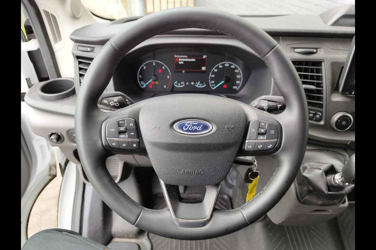 Ford Transit 2.0TDCI 130pk 350 L4H3 Navi Camera Pdc Apple Carplay Android WiFi Airco Cruise Control Voorruit-Verwarmd Regensensor DAB Schuifdeur Betonplex Vloer Wandbetimmering Roll Stability Control Led Spoorwisselassist Euro 6 Zeer Compleet!