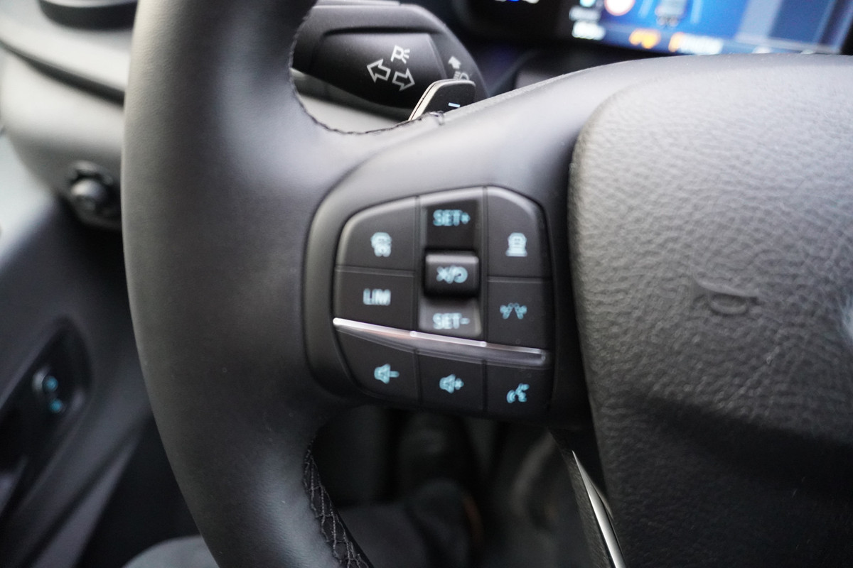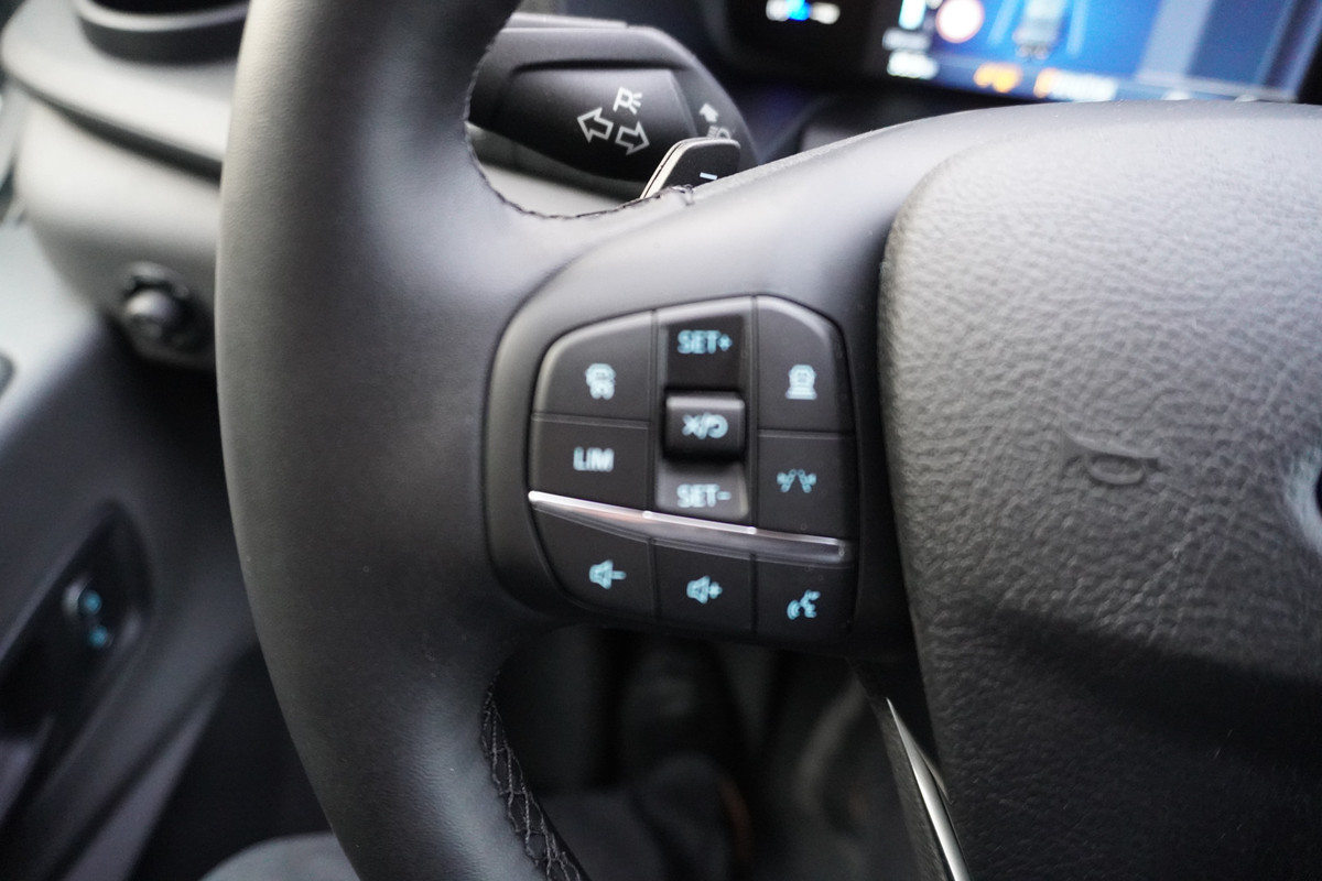U geniet nog meer van het rijden met uw Ford omdat u wordt beschermd door intelligente veiligheidssystemen. Verkeersborddetectie herkent tijdelijke en permanente verkeersborden langs en boven de weg. Het Lane-keeping systeem registreert permanent of u binnen de lijnen van de rijstrook blijft; dwaalt u onbedoeld af, dan waarschuwt het systeem en corrigeert de koers. De forward collision warning reduceert het gevaar van een botsing met een voorligger significant. Met voorzieningen als dodehoekdetectie, hill hold functie, autonoom remsysteem en bandenspanningcontrolesysteem, bent u altijd veilig onderweg.