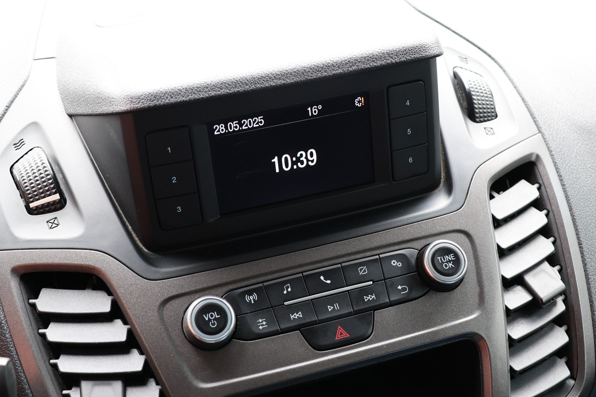 Ook over uw schouder ziet u onderweg niet alles wat er aan de achterzijde gebeurt. Daarom heeft deze Ford Transit Connect een achteropkomend verkeer waarschuwing. Knoppen voor audio-aanpassingen zijn onder direct handbereik met de audiobediening op het stuur. Met de DAB-ontvanger luistert u naar glasheldere digitale radio. De parkeersensoren waarschuwen wanneer u te krap inparkeert of dat ene paaltje niet hebt gezien. Natuurlijk is er ook cruise control aan boord, waarmee u meer ontspannen en zuiniger rijdt. Met airconditioning, centrale deurvergrendeling met afstandsbediening, boordcomputer en verstelbaar stuur is deze auto helemaal compleet.