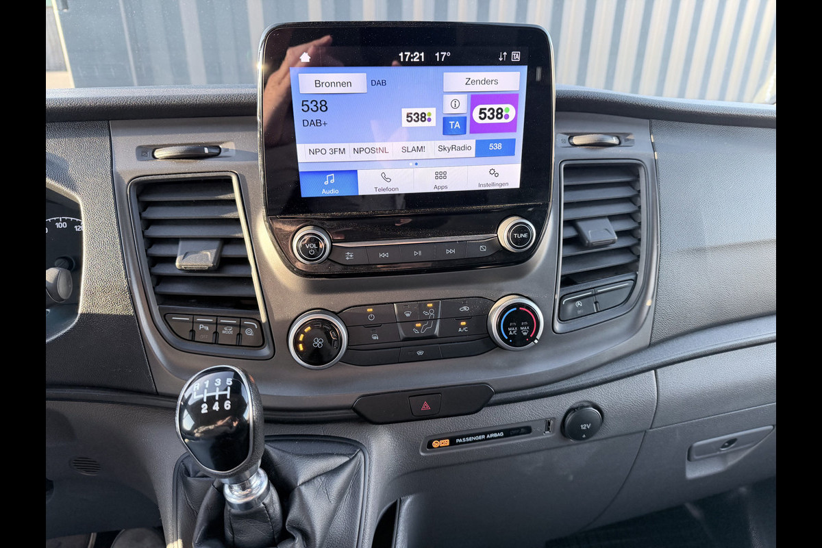 Ook achter de auto geen verrassingen bij het inparkeren. Daarvoor zorgt de achteruitrijcamera. De ingebouwde Connected Services vertellen u via de app alles over de status van de auto. Locatie, onderhoudsstatus, brandstofpeil en nog veel meer! Kies de muziek waarvan u houdt, dankzij de dab-radio klinkt het altijd geweldig. Intussen bedient u het audiosysteem met de knoppen op het stuur. Aan boord van deze Ford Transit Custom is een achteropkomend verkeer waarschuwing voor extra veiligheid. Cruise control verlaagt de brandstofkosten en verhoogt het rijcomfort. En dan is deze auto ook nog eens voorzien van WIFI-hotspot, airconditioning, lederen stuur, centrale deurvergrendeling met afstandsbediening en boordcomputer.