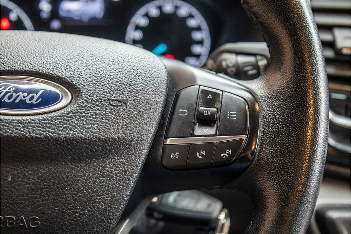Pragmatisch en veilig als deze auto is, beschikt hij over diverse veiligheidssystemen. Het Lane-keeping systeem let constant op en waarschuwt of corrigeert als u onoplettend over de lijnen van de rijstrook gaat. Een veilige extra is de Brake Assist. Uit onderzoek blijkt dat bestuurders bij een noodstop niet het maximum uit hun remkracht halen. Met deze automatische remondersteuning wel. Bovenop deze veiligheidsfeatures heeft deze Ford bovendien dodehoekdetectie en hill hold functie.