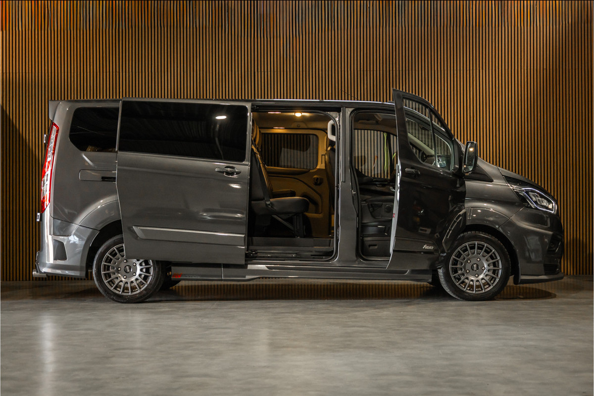 Ford Transit Custom MS-RT 320 2.0 TDCI L2H1 DC | ACC | BLIS | Bi-Xenon | Elek stoel | CarPlay | Navigatie | Camera | Stoelverwarming | L+R Schuifdeur | Lederen bekleding | Spoiler-pakket | Nieuwe APK | Verlengde fabrieksgarantie
