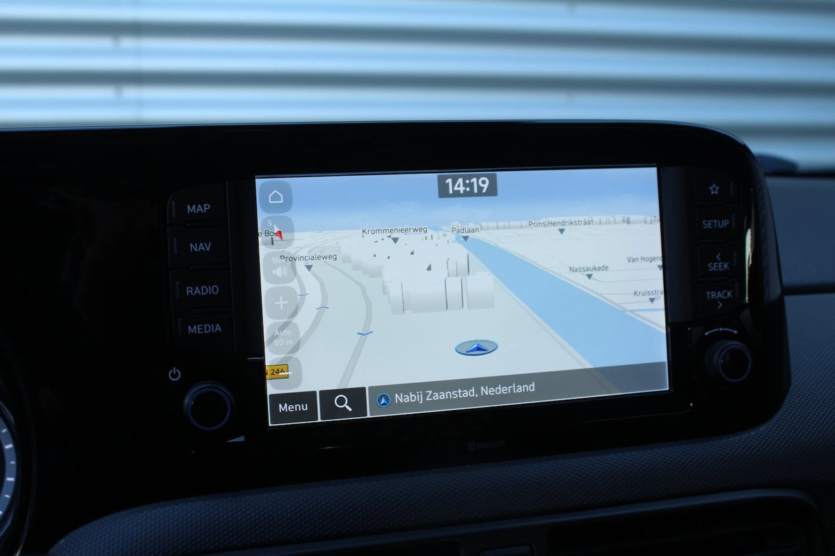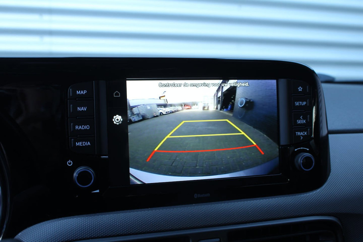 De hoogwaardige achteruitrijcamera en het display met hoge resolutie zorgen dat helemaal niets u meer ontgaat van wat er achter de auto gebeurt. Connected Services voegt nog meer comfort en veiligheid toe aan deze auto. Onderweg kunt u veilig genieten van het audiosysteem met DAB-radio en het full map navigatiesysteem. Want in deze Hyundai bedient u ze vanaf het stuurwiel of met uw stem. Cruise control is aanwezig; prettig voor de lange einden. En natuurlijk is er ook gedacht aan airconditioning. Extra opties op deze auto zijn: centrale deurvergrendeling met afstandsbediening, boordcomputer en verstelbaar stuur.