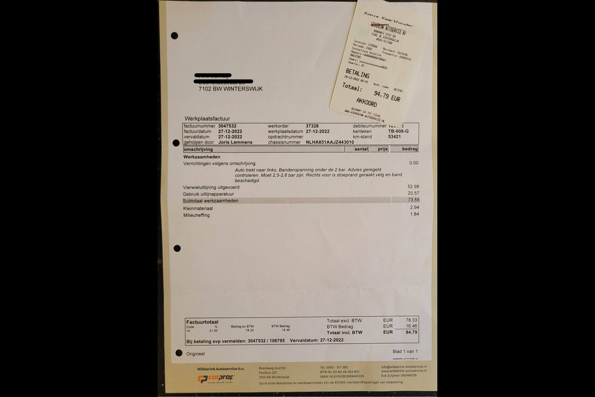 - de APK keuring indien deze binnen drie maanden afloopt