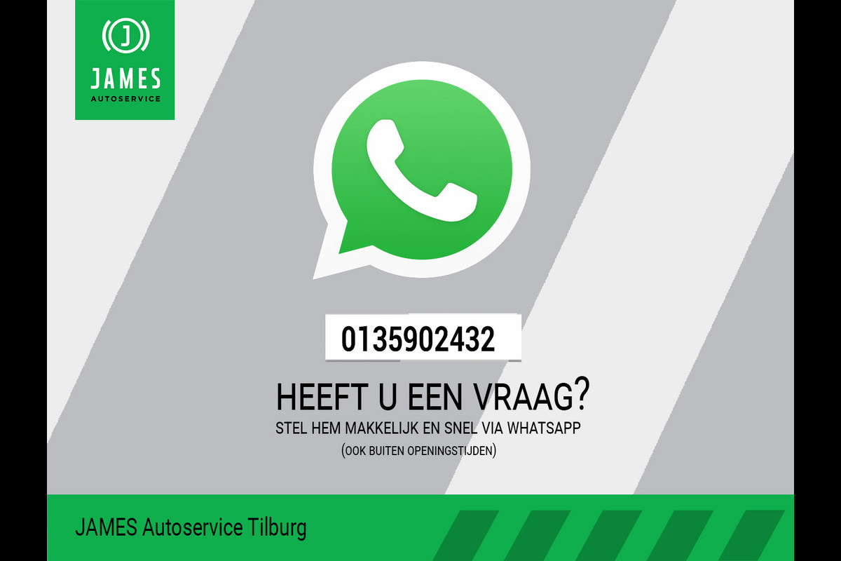 JAMES Autoservice Tilburg is al meer dan 35 jaar een begrip in Tilburg en omgeving. Bezoek onze website www.jamestilburg.nl voor meer informatie over ons bedrijf, ons actuele aanbod, aanvullende foto’s en een 360° video van onze auto’s.
