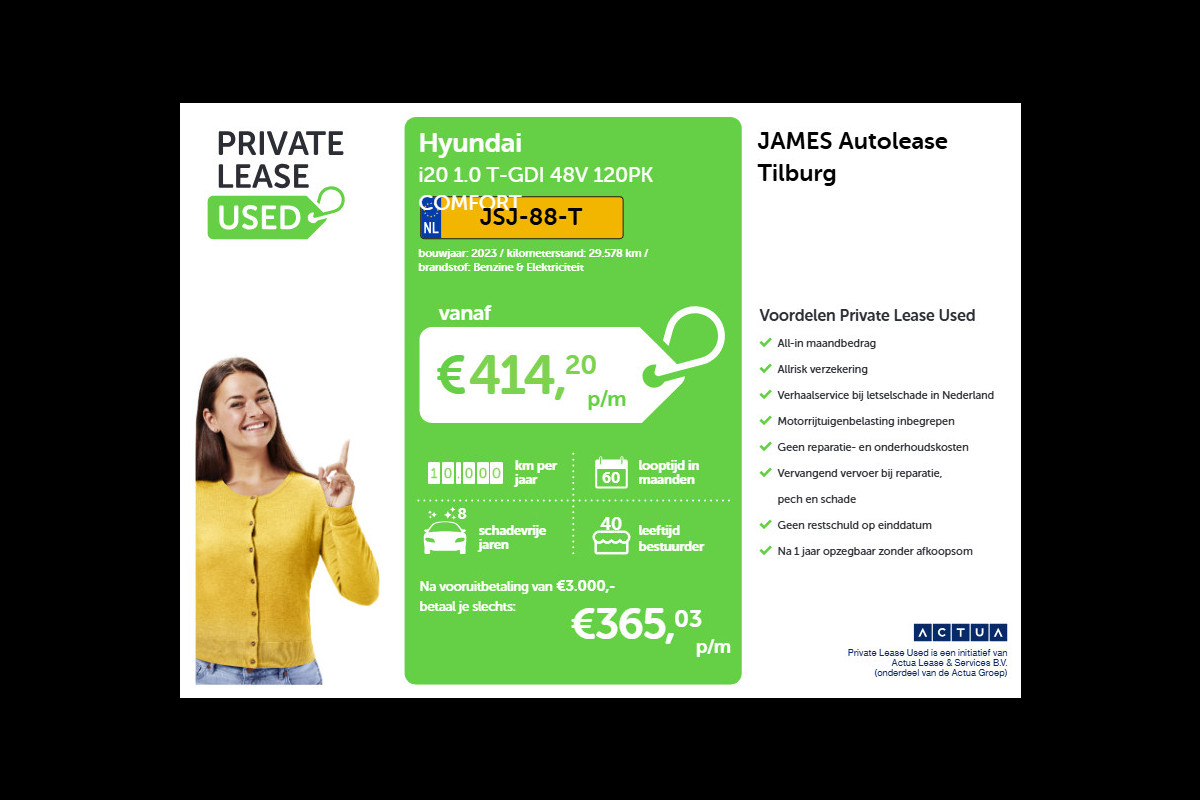 Leaseprijs: € 365 p/m (private lease, 60 maanden, 10.000 km); informeer naar de mogelijkheden en voorwaarden