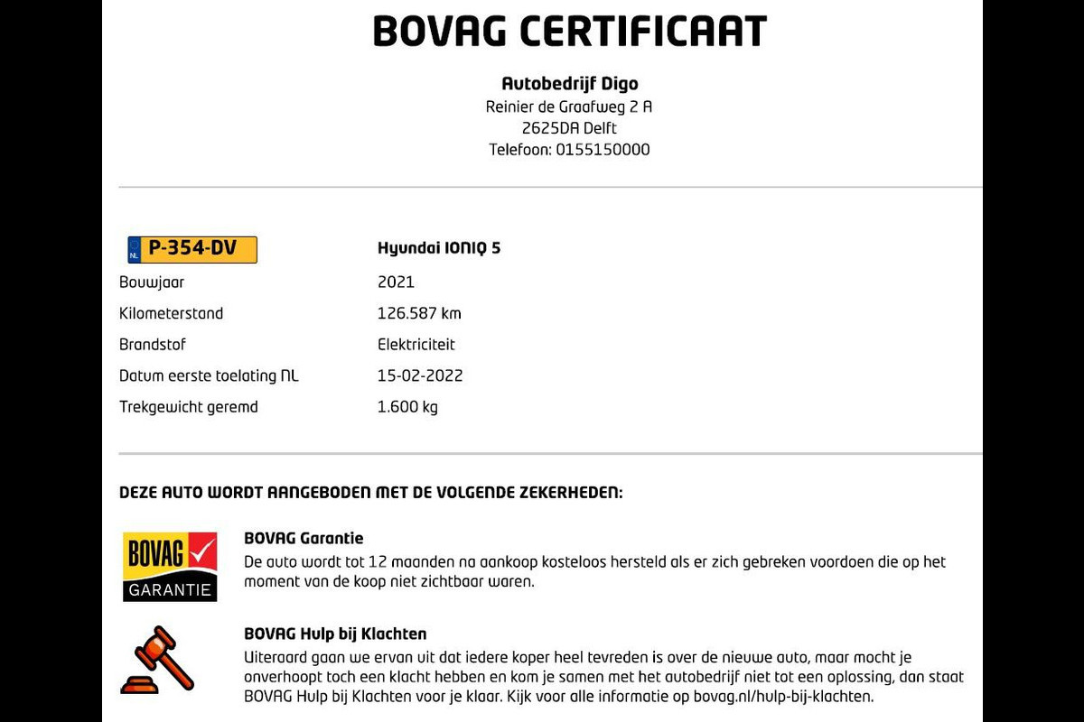 - Garantie 12 mnd. BOVAG garantie