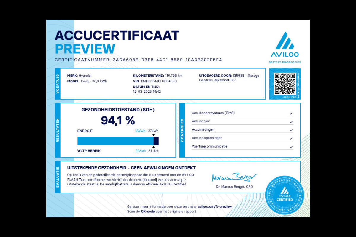 Accu: 38 kWh, Conditie: 94%