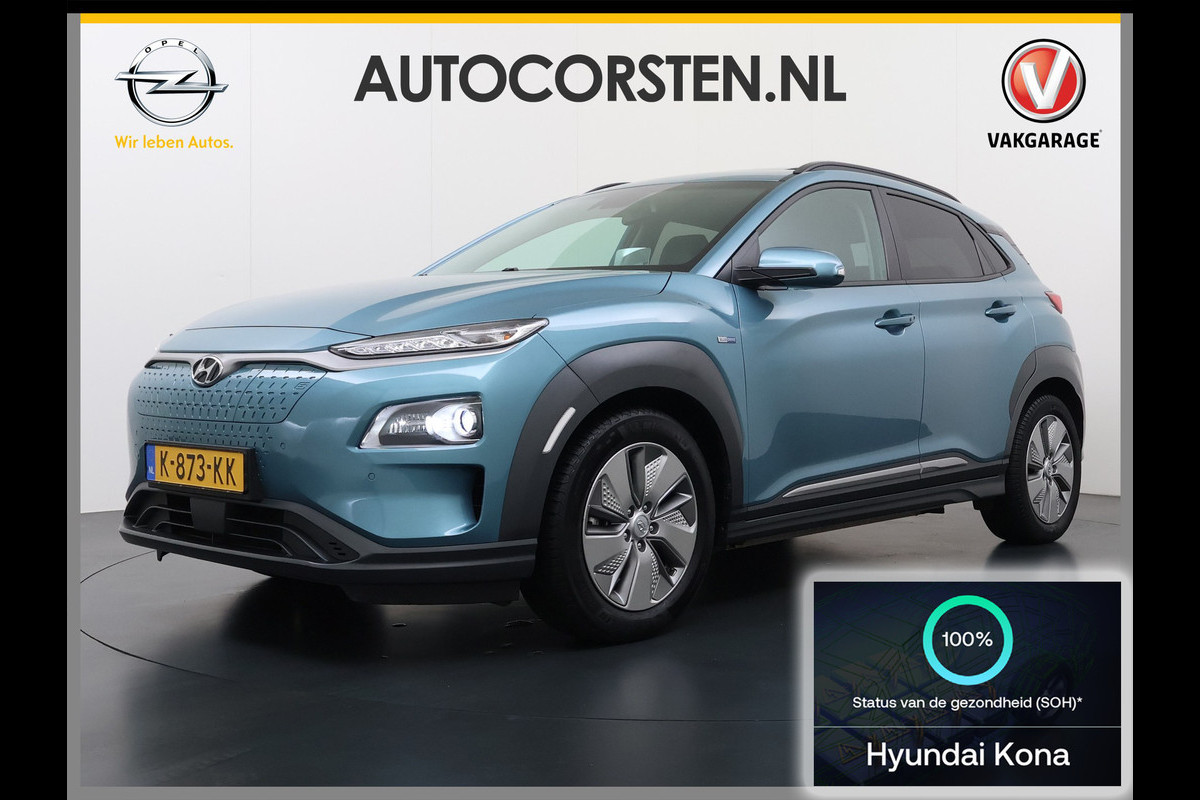 Hyundai Kona EV 64kWh SOH 100% Fase 3 Warmtepomp Leder Schuif-/kanteldak Head-Up Display Adap.Cruise Apple Carplay Android Auto Navi Ecc Came Keyless Stoelverwarming/Koeling Stuurverwarming Elek.Stoelen Blind Spot Monitoring Lane Assist DAB Led Origineel Nederlandse Auto Super compleet!