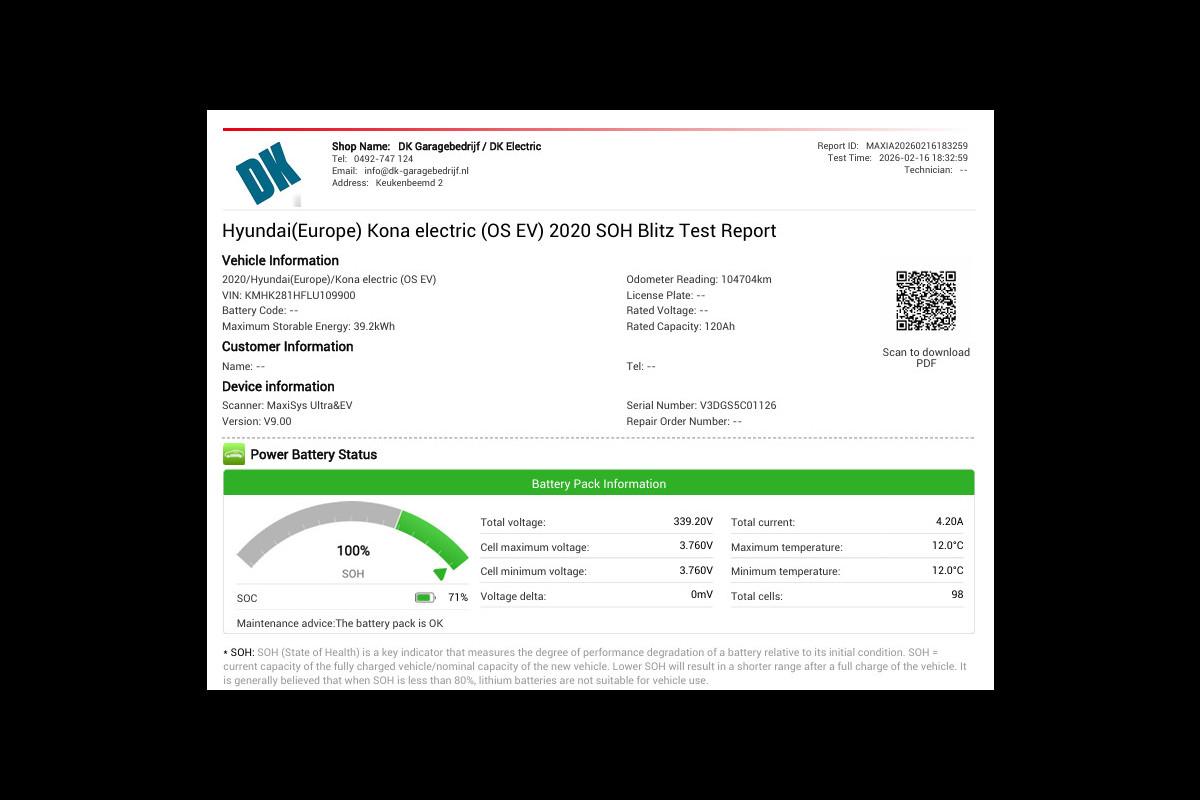 Accu: 39 kWh, Conditie: 100%