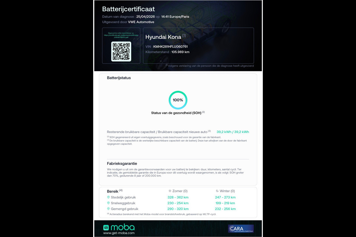 Opzoek naar een SoH (state of health) test voor u EV batterij? U kunt bij autohuis de vaart terecht voor slechts €85,- inclusief officieel MOBA rapport. Binnen 10 minuten klaar.