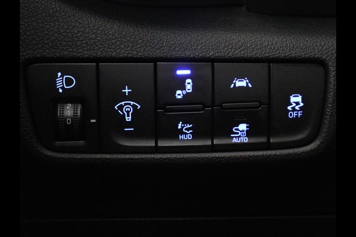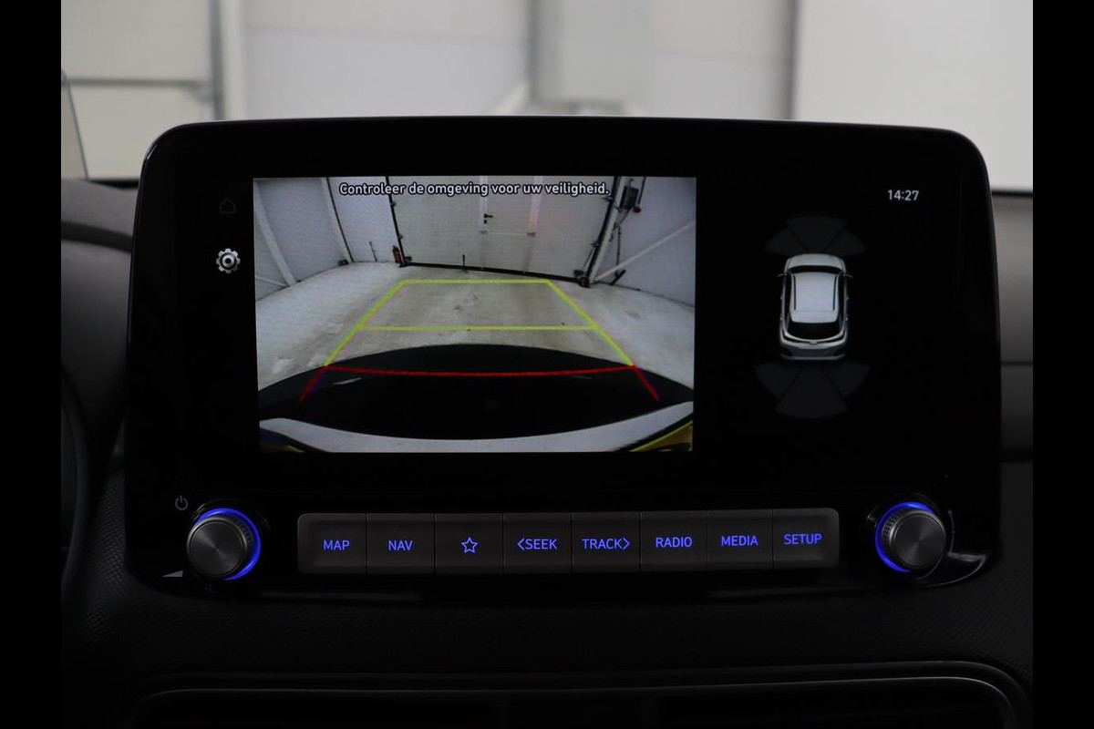 Zoals u mag verwachten van deze Hyundai Kona is hij uitgerust met een reeks aan actieve veiligheidssystemen. In het instrumentarium laat de verkeersborddetectie de actuele verkeersborden zien. Het Lane-keeping systeem let constant op en waarschuwt of corrigeert als u onoplettend over de lijnen van de rijstrook gaat. Kop-staartbotsingen vormen een belangrijk deel van de meest voorkomende aanrijdingen. De forward collision warning van deze auto voorkomt zulke botsingen geheel of reduceert de ernst van de schade aanzienlijk. Dankzij veiligheidsvoorzieningen als head-up display, dodehoekdetectie, hill hold functie, vermoeidheidsherkenning, autonoom remsysteem en bandenspanningcontrolesysteem, bent u steeds veilig onderweg.