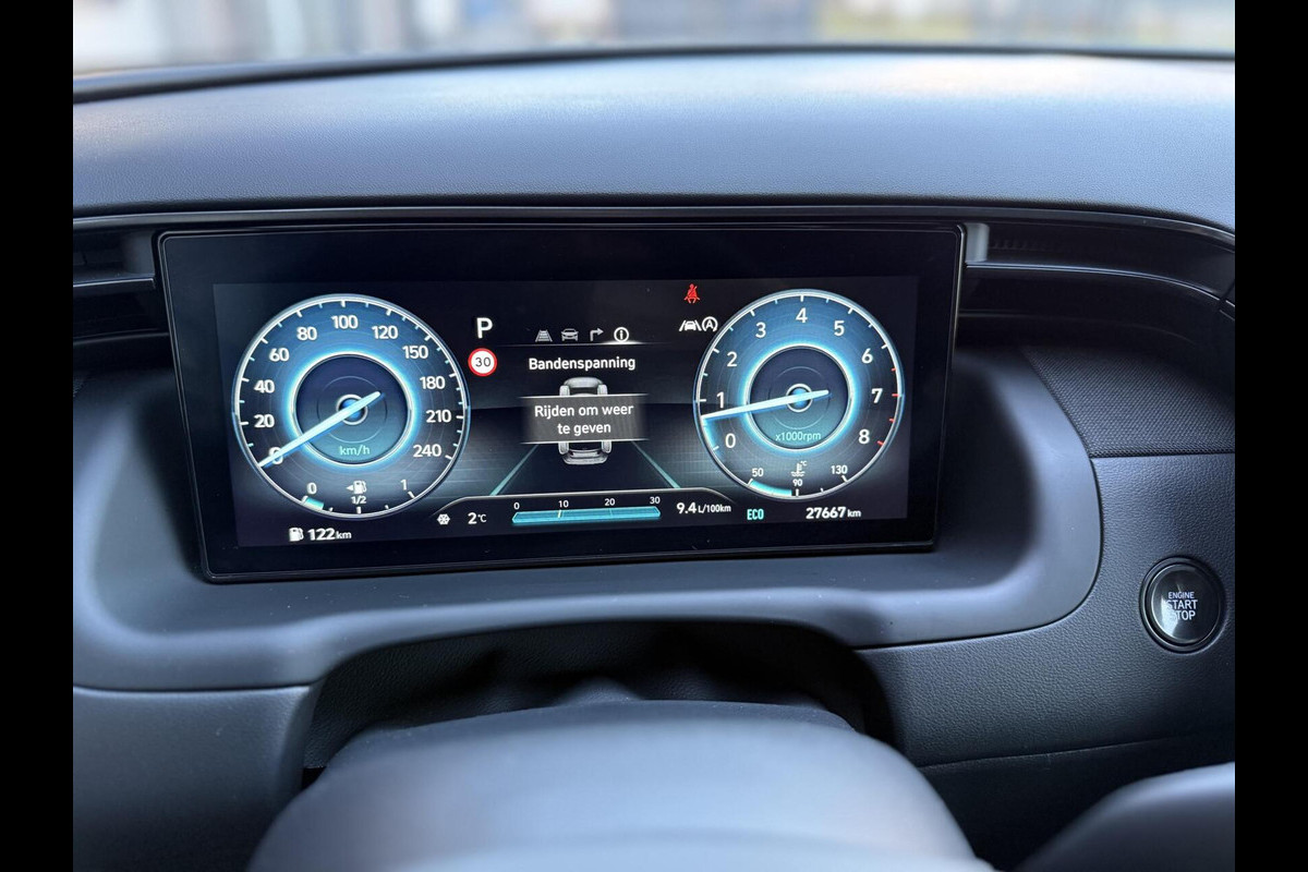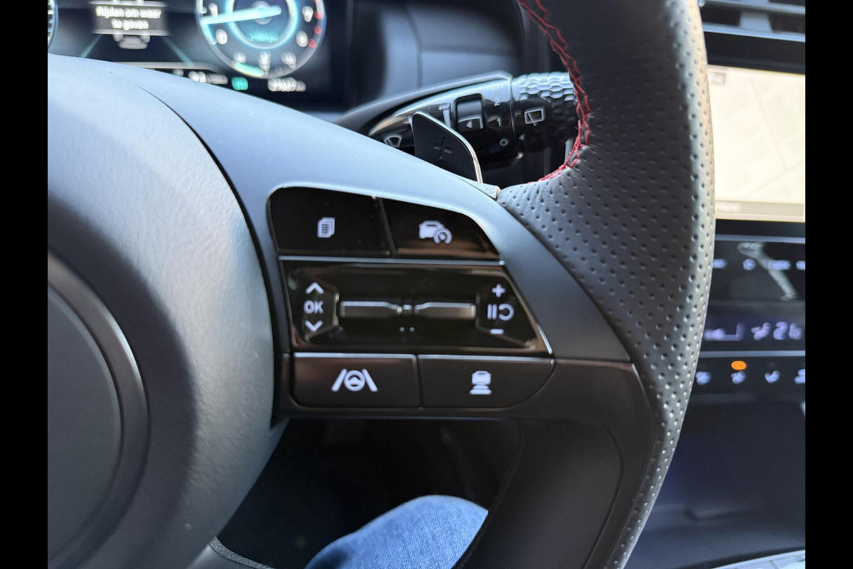 Het digitale dashboard is niet alleen enorm fraai en handig, maar draagt actief bij aan een veilige en slimme rit. Met de 360 graden camera kunt u elk detail rond de auto zien, waardoor mogelijke schade door verkeerd inschatten van afstanden vermeden wordt. Adaptive cruise control is een comfortabele en veilige optie. Het systeem reguleert de snelheid en houdt automatisch afstand tot uw voorligger. De ingebouwde file assistent is een echte helper als het vaststaat onderweg. Het systeem meet ruimte tot de auto vóór u permanent en activeert zelfs de remmen als uw voorligger stopt. De auto is voorzien van een trekhaak en is een uitstekende caravantrekker. De uitrusting van deze Hyundai is met dashboard met spraakbediening, connected drive services, premium audiosysteem, full map navigatiesysteem, kruisend verkeer detectie en automatische airconditioning behoorlijk compleet.