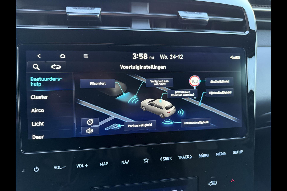 Met de nieuwste technologieën aan boord is deze Hyundai in staat om zelf te reageren op potentieel gevaarlijke situaties op de weg. Onderweg zorgt verkeersborddetectie ervoor dat u geen waarschuwingsbord mist. Met het Lane-keeping systeem gaat u nooit onbedoeld over de streep. Het risico van een kop-staartbotsing wordt aanzienlijk verminderd door de forward collision warning. In deze Hyundai vinden we verder een dodehoekdetectie, hill hold functie, vermoeidheidsherkenning, autonoom remsysteem en bandenspanningcontrolesysteem.