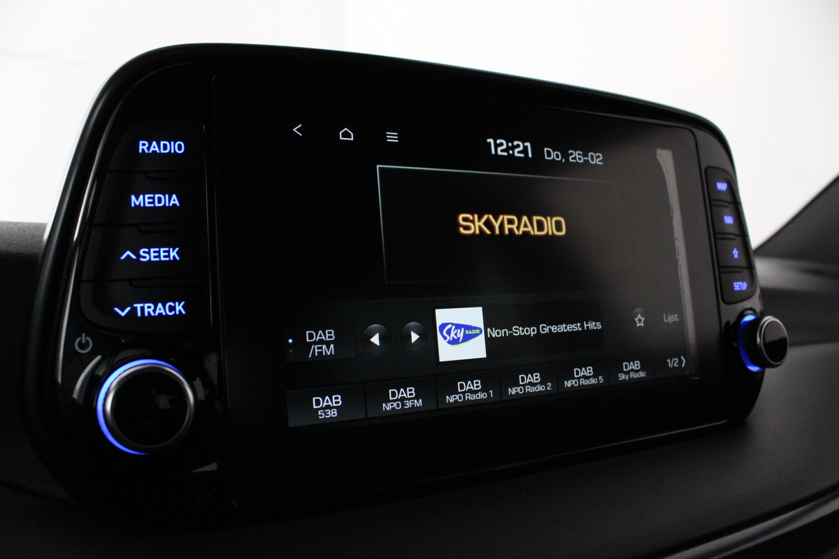 Op het gebied van technologie en veiligheid is deze TUCSON zeer rijk uitgerust. Het navigatiesysteem met full map zorgt ervoor dat u altijd de juiste route volgt, terwijl Apple CarPlay en Android Auto uw smartphone naadloos integreren. Uw telefoon laadt u eenvoudig draadloos op. Met de DAB-ontvanger geniet u van digitale geluidskwaliteit.