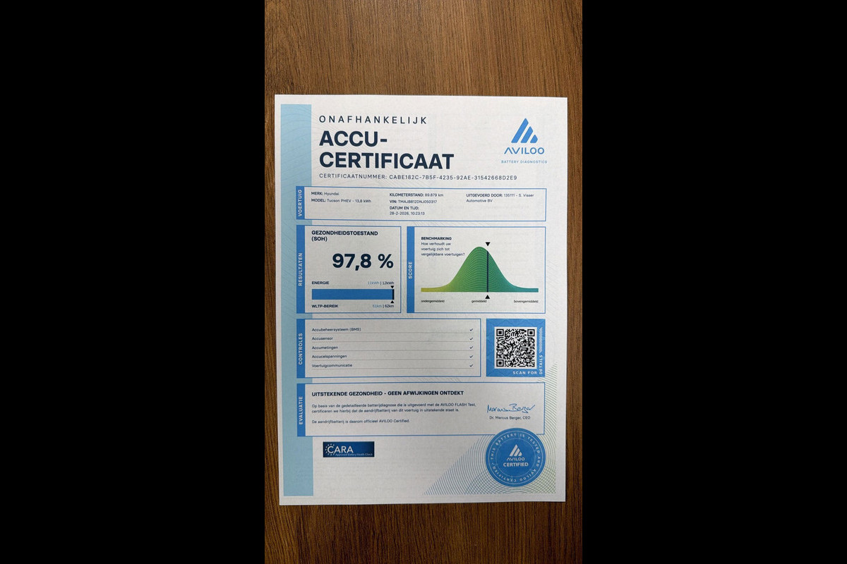 Na de meting ontvangt u van ons een officieel certificaat met de vastgestelde SOH-waarde, dit biedt transparantie en zekerheid bij aankoop.
