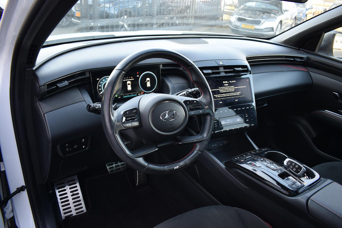Natuurlijk brengt het digitale dashboard alle ritinformatie perfect in beeld. Maar ook communicatie, navigatie en tal van andere functies zijn permanent te volgen. De vier camera's genereren samen een 360 graden beeld rond de auto, zodat u een volledig overzicht hebt van wat er rondom uw auto gebeurt. Met adaptive cruise control houdt deze auto automatisch afstand tot uw voorligger. Rijden-stilstaan, rijden-stilstaan. Niks is irritanter en vermoeiender dan filerijden. Daar heeft deze Hyundai Tucson een oplossing voor: de file assistent, die met radarmeting permanent het tempo aanpast op de voorligger. Zelfs als die stopt. In deze auto kunt u de belangrijkste functies bedienen met uw stem. Met connected drive services, premium audiosysteem, full map navigatiesysteem, kruisend verkeer detectie, automatische airconditioning en draadloos opladen is deze auto helemaal compleet.