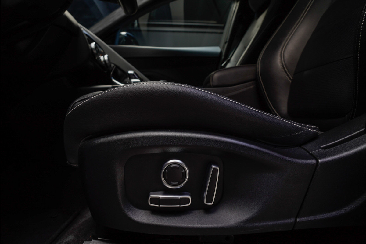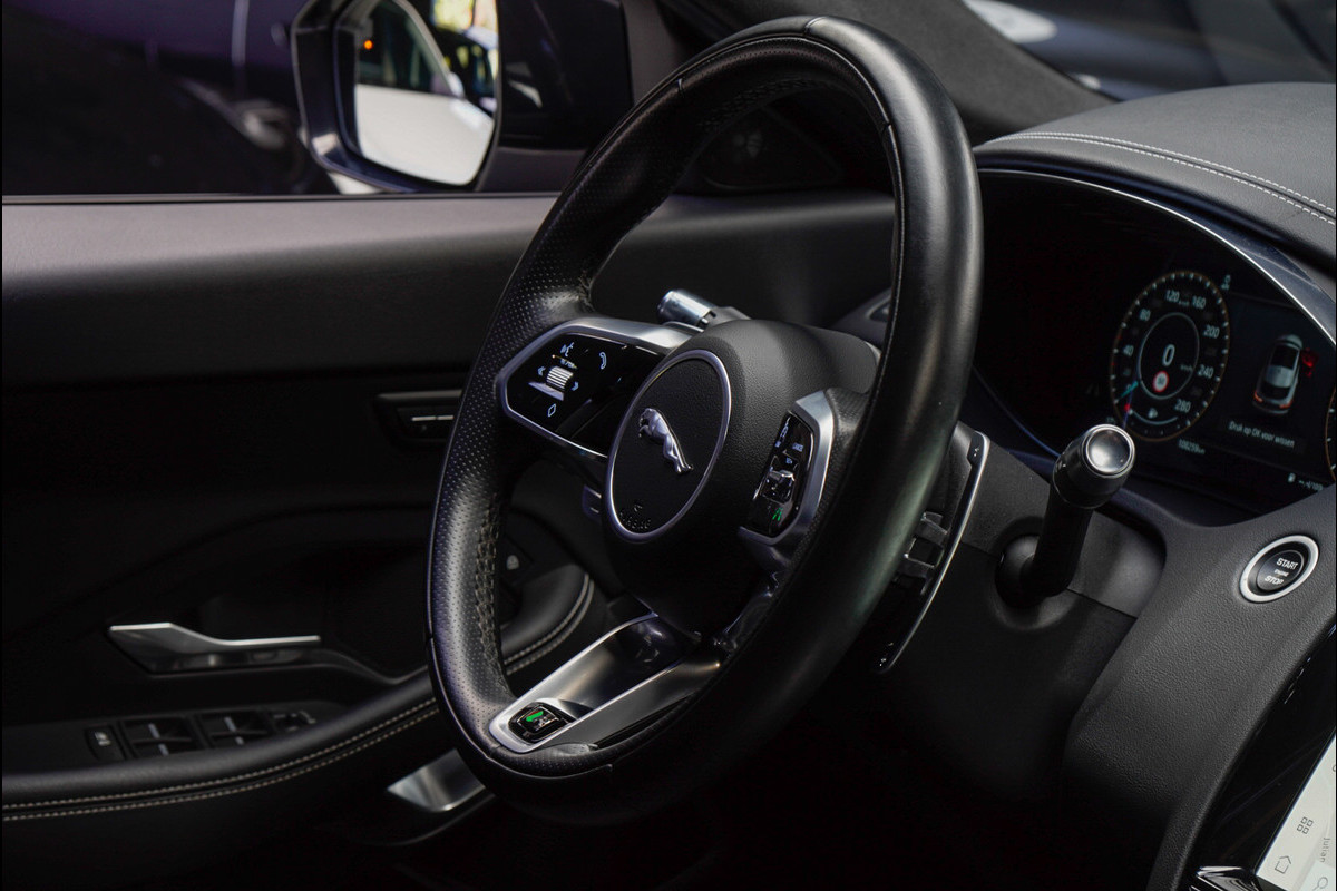 Het digitale dashboard ondersteunt u voortdurend met actuele, bruikbare informatie. De 360 graden camera kan het blinde vlek probleem van de achteruitkijkspiegel oplossen, waardoor ongevallen worden voorkomen. Als u de adaptive cruise control inschakelt, regelt de auto zelf de snelheid en de afstand tot de auto voor u. Spraaksturing luistert naar uw stem en bedient de belangrijkste voertuigfuncties. Als belangrijke extra geldt zonder twijfel het high performance audiosysteem met topkwaliteit geluidsweergave. De uitrusting van deze Jaguar is met met leder bekleed dashboard, full map navigatiesysteem, DAB ontvangst, regensensor, keyless entry en automatisch dimmende buitenspiegels behoorlijk compleet.