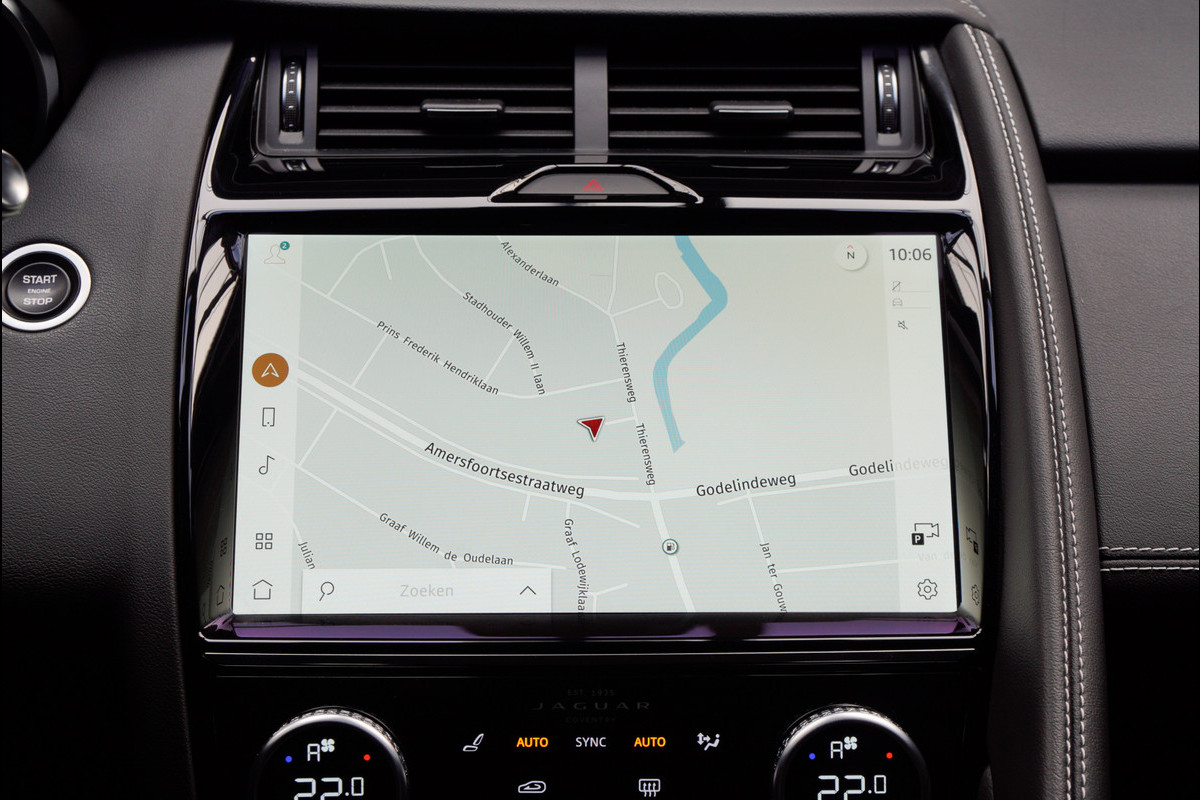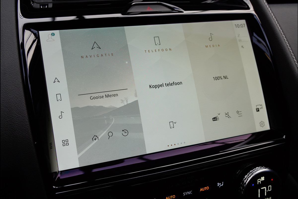 De nieuwste veiligheidssystemen komen in deze Jaguar E-PACE samen. In het instrumentarium kunt u bovendien de verkeersborden zien die u onderweg tegenkomt. Zo helpt deze Jaguar u om veiliger te rijden. Deze Jaguar E-PACE is ook behulpzaam als het gaat om een rechte koers. Het Lane-keeping systeem signaleert en corrigeert als u onbedoeld de rijstrooklijnen dreigt te overschrijden. Het forward collision warning-systeem berekent via een sensor de afstand tot het verkeer vóór u en komt in actie als er gevaar bestaat van een botsing. In deze Jaguar vinden we verder een dodehoekdetectie, hill hold functie, vermoeidheidsherkenning, autonoom remsysteem en bandenspanningcontrolesysteem.