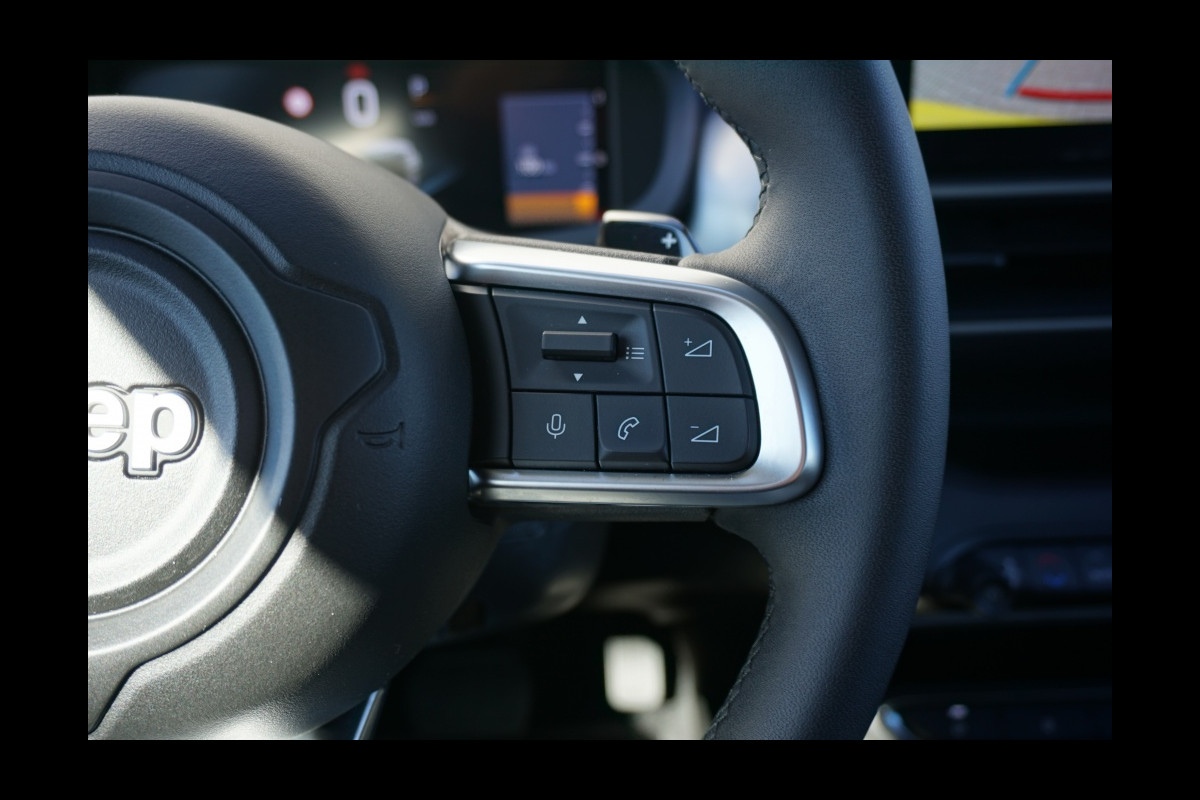 Zoals u mag verwachten van deze Jeep Avenger is hij uitgerust met een reeks aan actieve veiligheidssystemen. De actuele snelheidslimiet, een inhaalverbod en andere verkeersborden; de verkeersborddetectie ondersteunt u tijdens elke rit. Botsingen met een voorligger gebeuren relatief vaak. De forward collision warning slaat tijdig alarm als dat risico ontstaat, zodat u kunt ingrijpen. Vermoeidheidsherkenning is een systeem dat met verschillende sensoren tekenen van vermoeidheid bij de chauffeur waarneemt. Deze krijgt tijdig een waarschuwing, wat ongelukken kan voorkomen. Dankzij veiligheidsvoorzieningen als dodehoekdetectie, hill hold functie, Abs - anti blokkeer systeem met brake assistant en bandenspanningcontrolesysteem, bent u steeds veilig onderweg.