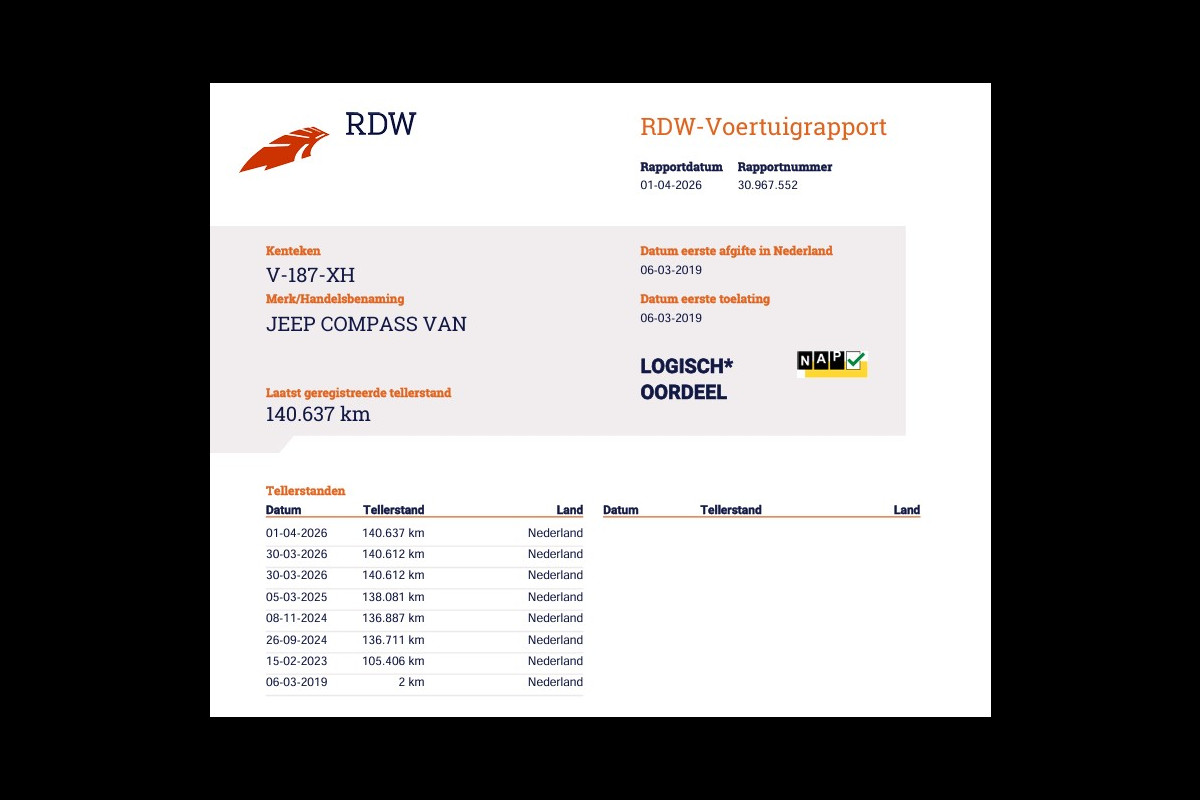 Dat de kilometerstand in orde is, blijkt uit het meegeleverde tellerrapport van Nationale Autopas. Is dit de auto die u zoekt? Neem snel contact met ons op, dan kunt u hem binnenkort zelf bekijken.