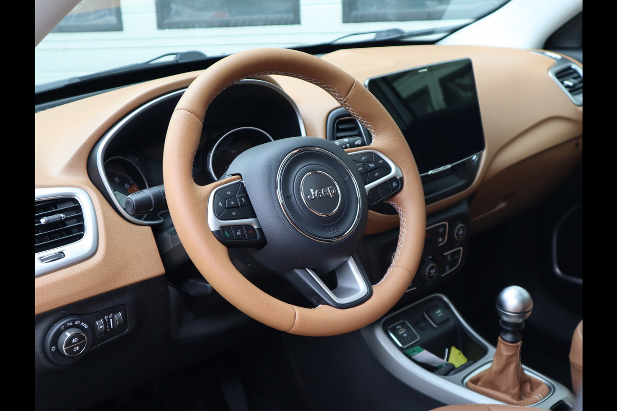 De hoogwaardige achteruitrijcamera en het display met hoge resolutie zorgen dat helemaal niets u meer ontgaat van wat er achter de auto gebeurt. U bedient het audio-installatiesysteem met dab-radio via knoppen op het stuur. Zo kunt u steeds uw aandacht gericht houden op de weg. Te weinig afstand tussen u en de achterligger? De sensoren registreren het direct en de achteropkomend verkeer waarschuwing geeft een signaal. Natuurlijk is er ook cruise control aan boord, waarmee u meer ontspannen en zuiniger rijdt. Een prettige optie is de keyless entry, die ervoor zorgt dat de Jeep Compass automatisch van het slot gaat als u dichtbij komt. Ook airconditioning, automatisch dimmende binnenspiegel, lederen stuur en centrale deurvergrendeling met afstandsbediening zijn aan boord.