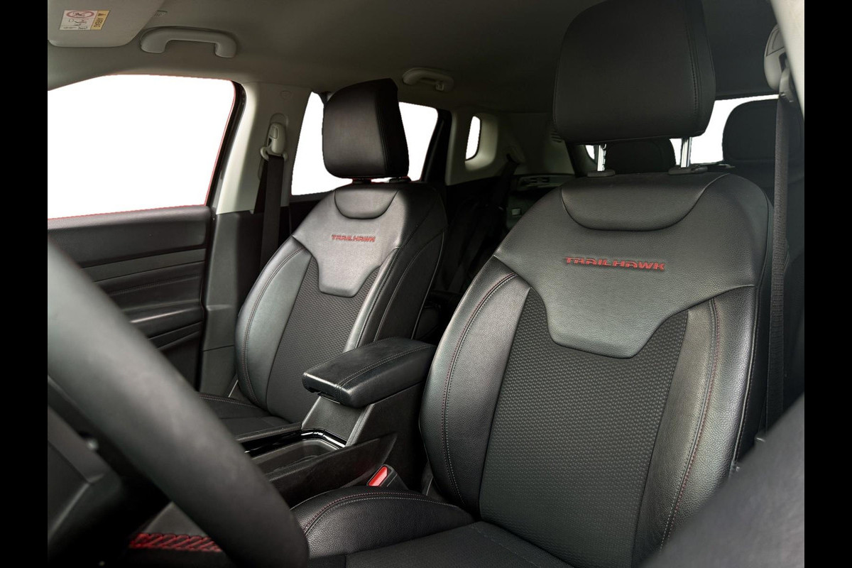 De binnenkant van de Trailhawk verwelkomt je met hoogwaardig leder en stoere afwerkingen, wat zorgt voor een perfecte balans tussen luxe en functionaliteit. De ergonomisch ontworpen stoelen bieden optimaal comfort, of je nu door de stad rijdt of offroad gaat.