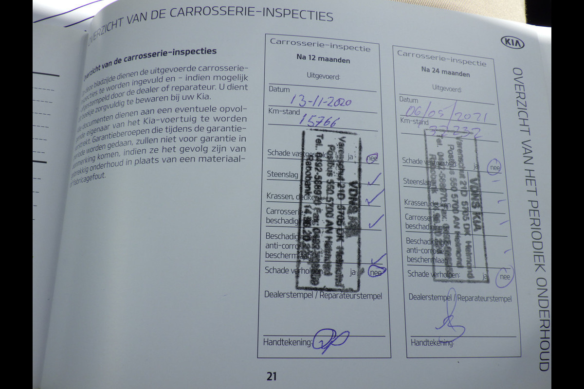 Onderhoudsboekjes: Aanwezig